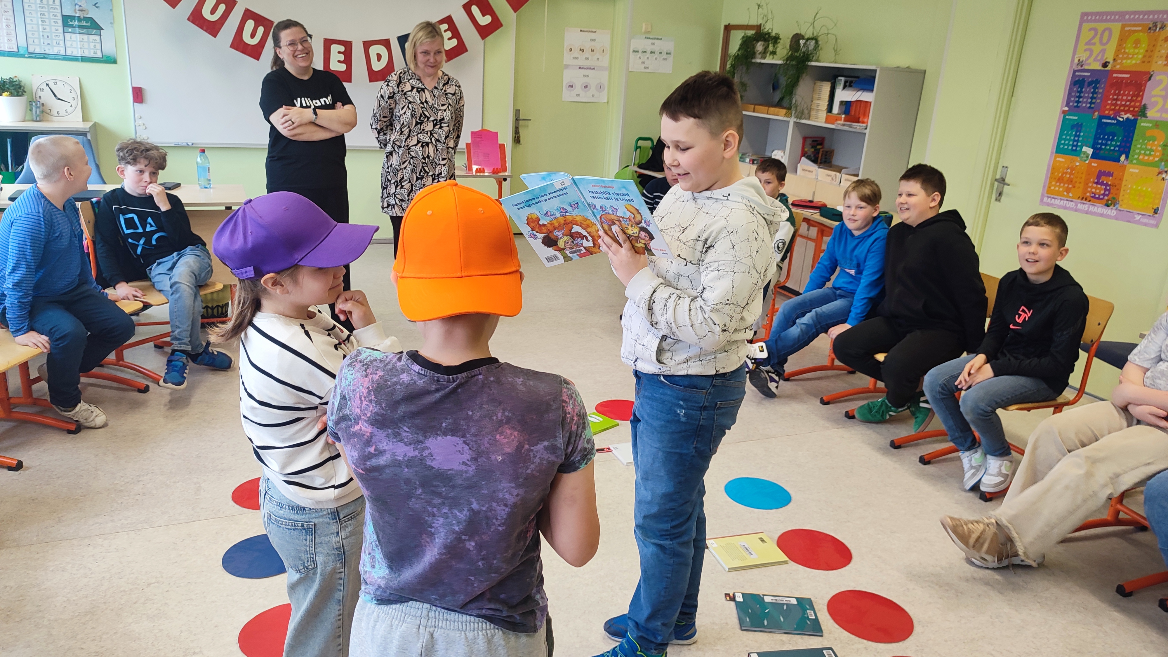 Teisipäeval, 22. aprillil said kolmandad klassid osaleda väga põnevas tunnis. Meile olid tulnud külla Viljandi raamatukogust Anneli Kengsepp ja Veronika Raudsepp, kes korraldasid lastele "Luuleduelli". See oli nagu suur lauamäng, kus mõlema võistkonna üks liige oli mängunupuks ja teised said kordamööda veeretada täringut ja seejärel lugeda luuletust, milleni mängunupp oli liikunud. Mõnikord tuli luuletusi lugeda hoopis väikese vimkaga - luksudes, hüpates, lauldes ja nii edasi.