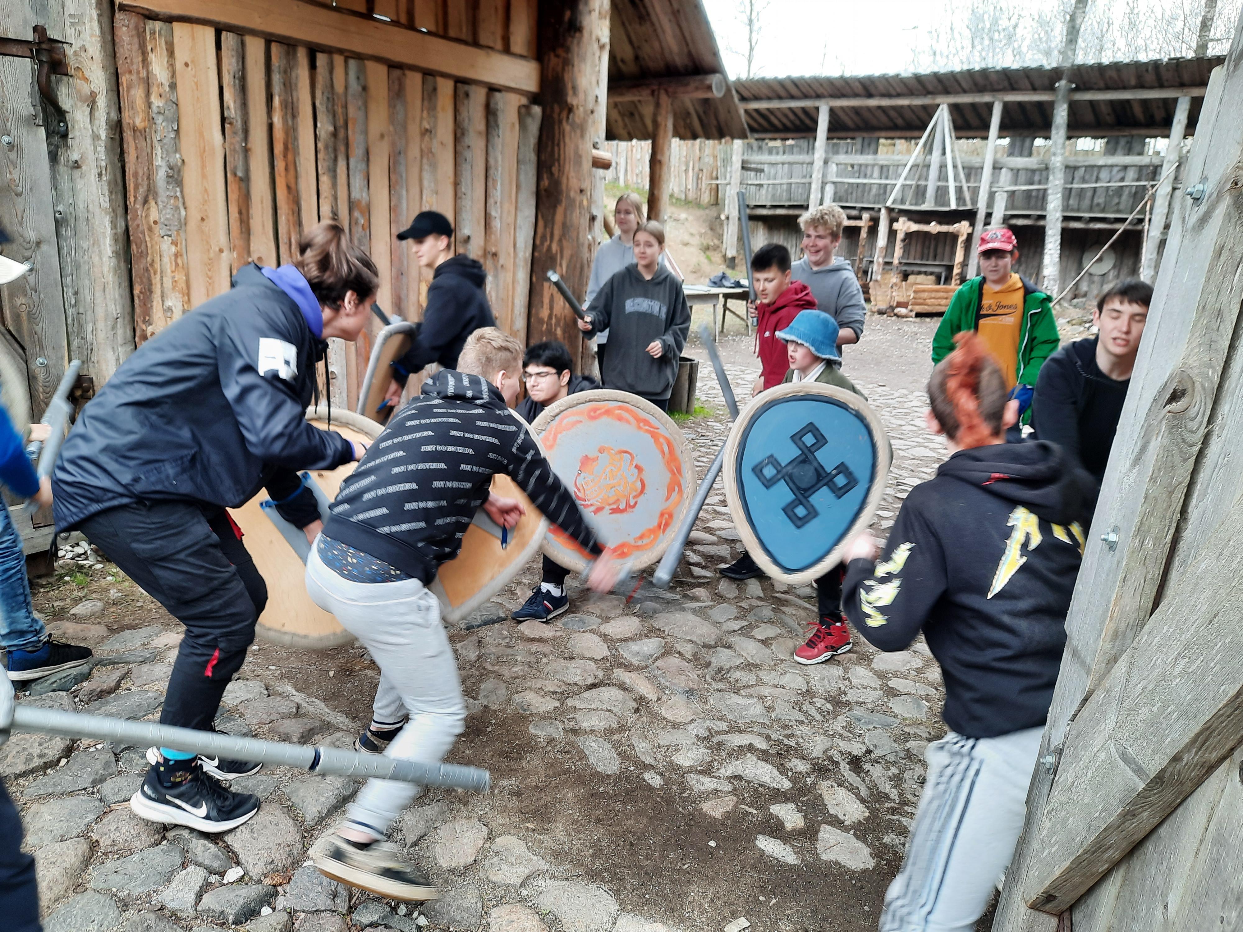 Meie partneriteks olid seekord Kohtla-Järve Kesklinna Kooli õpilased koos juhendaja Dmitri Kolotuškiniga. Elasime peaaegu terve nädala viikingiajas ja saime selle kohta juurde väärtuslikke teadmisi, oskusi ja kogemusi.