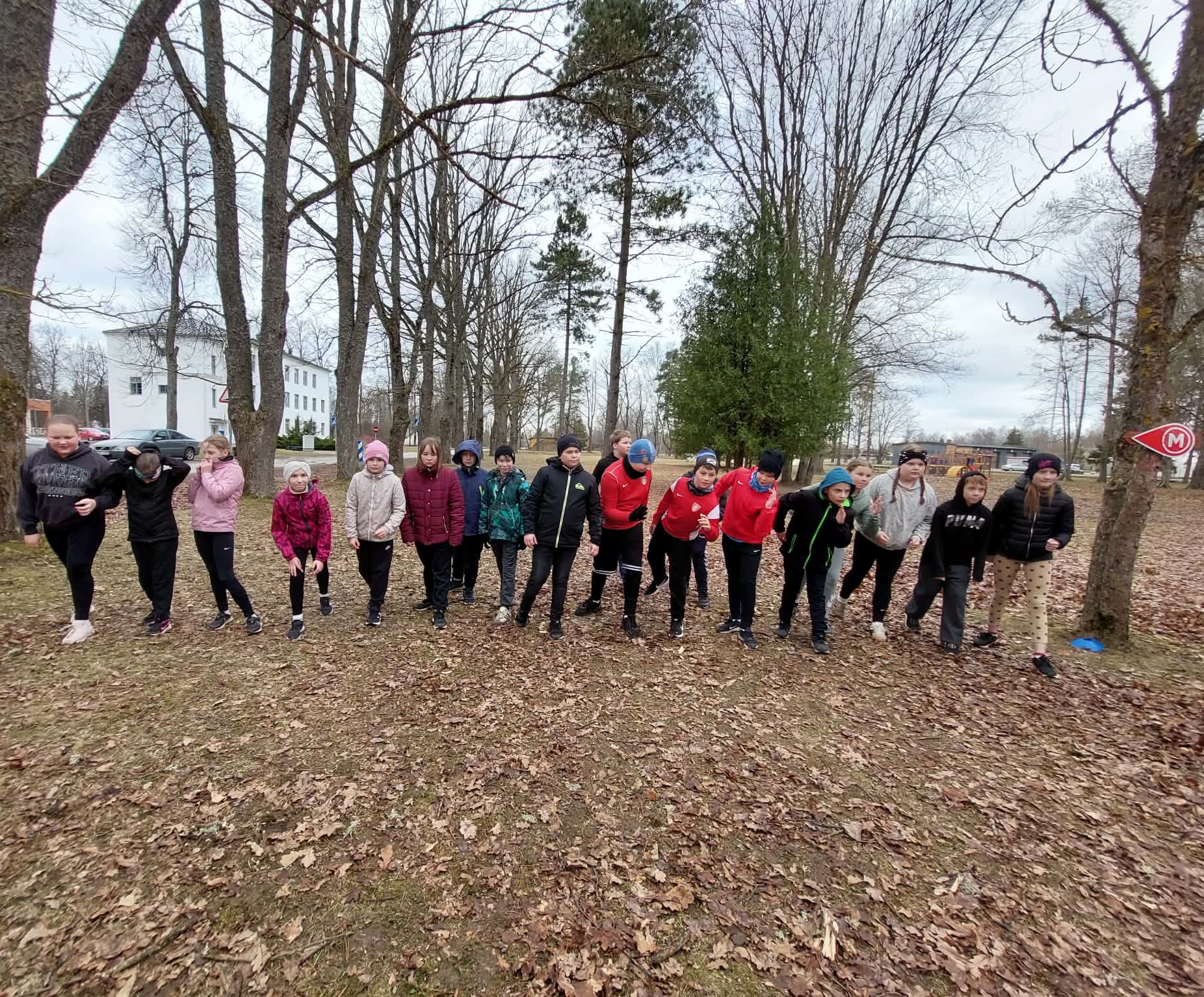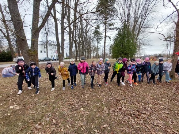 Kolmapäeval kogunesid algklasside lapsed laululava parki, et osaleda KEVADISEL KROSSIJOOKSUL. Väike soojendus ja rivistatigi klass stardijoonele.