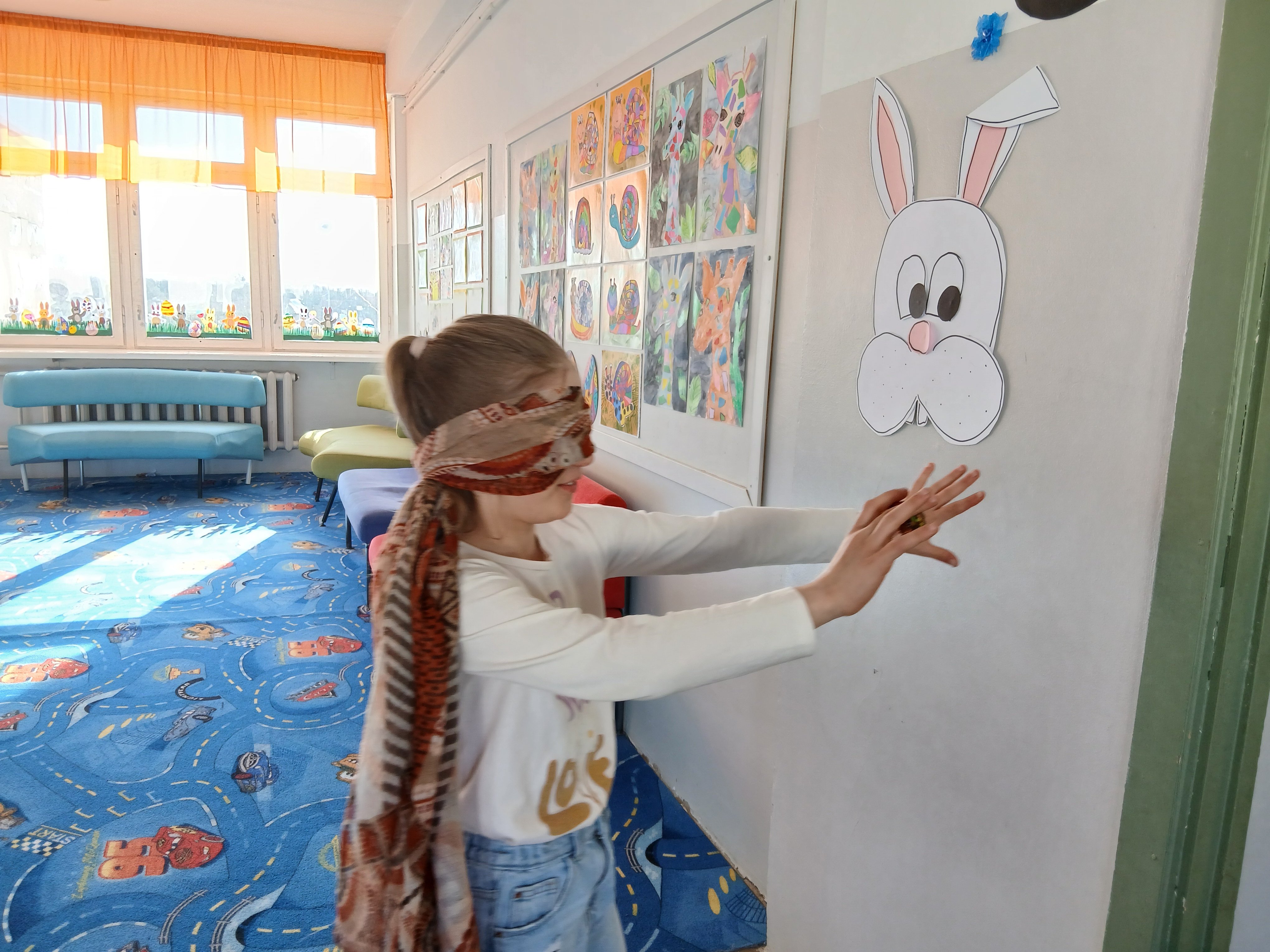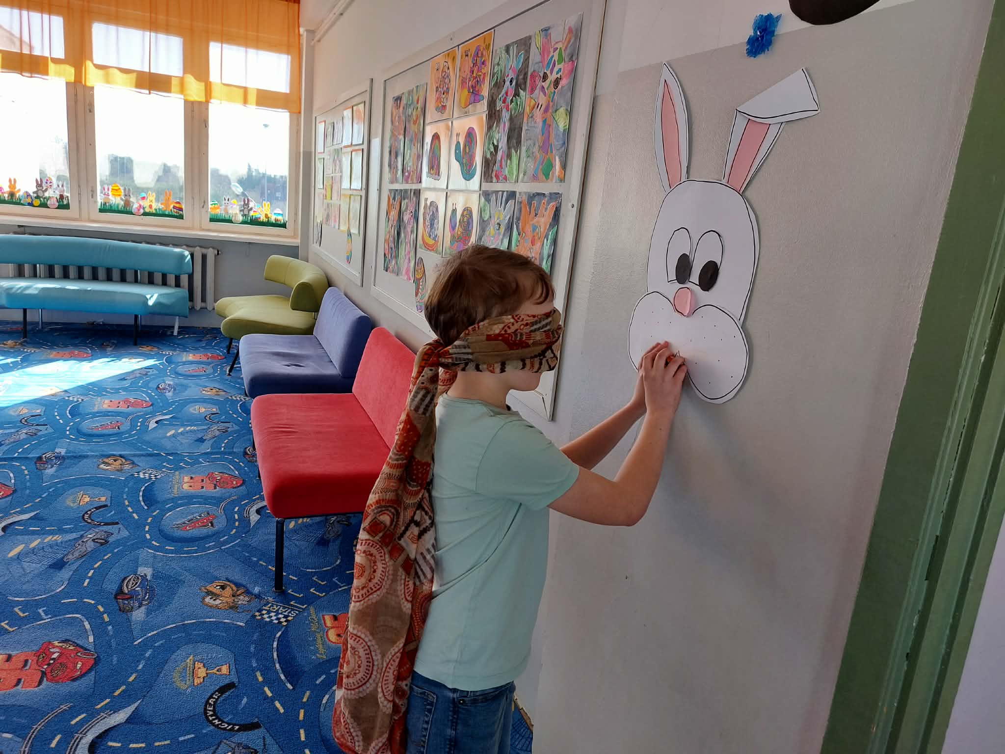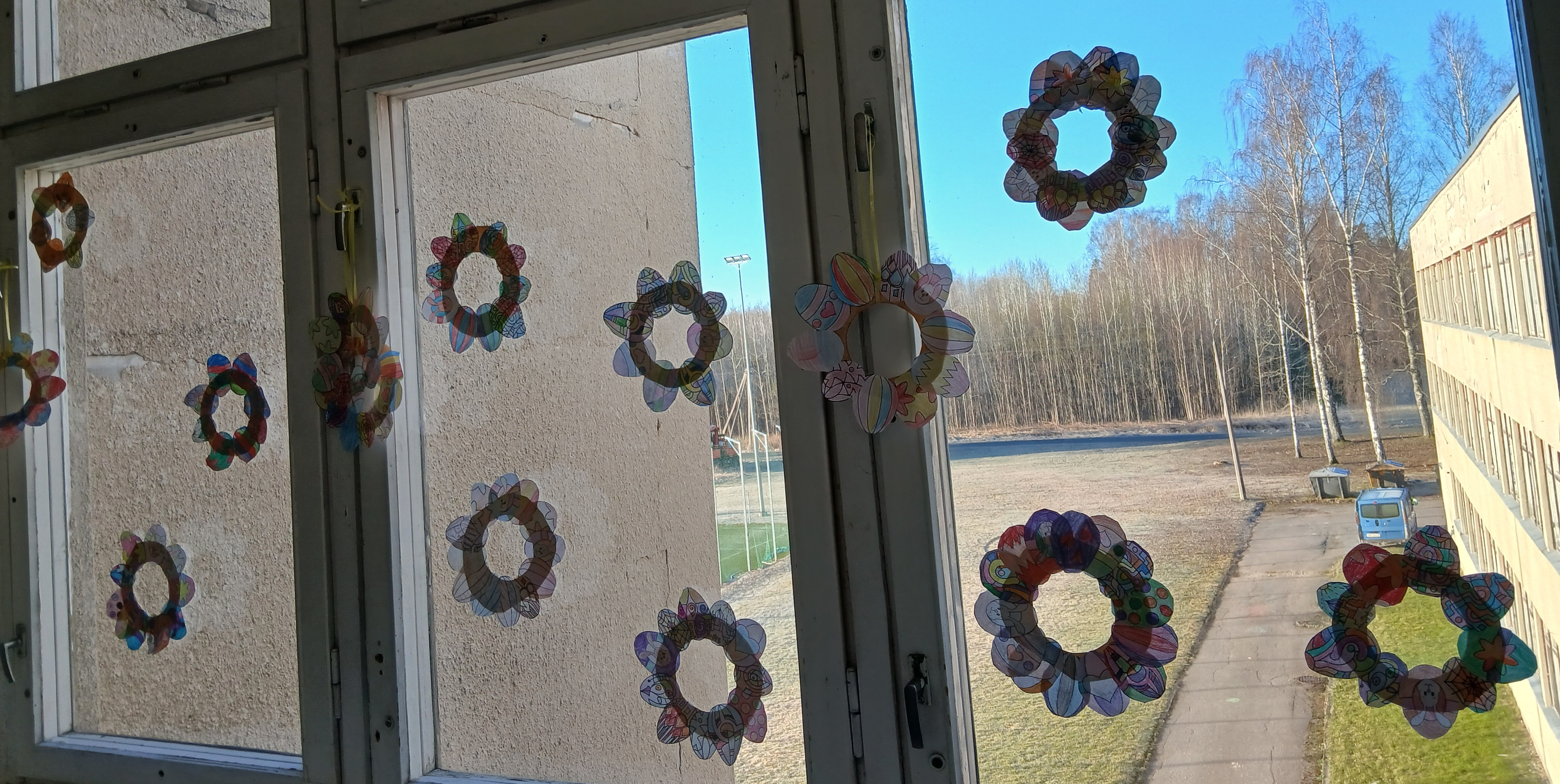 KEVADPÜHADE nädal tõi algklassi lastele uusi teadmisi ja põnevaid tegemisi. Pühade meeleolu oli tunda juba koridoris, kus aknad said uhkelt kaunistatud. Seal võis kohata lilli ja liblikaid, linde ja putukaid, jänkusid ja värvitud mune, isegi linnukesed olid pesa aknalauale teinud. Uudistada sai ka värvitud munade näitust. Neljapäeval said kõik osa lõbusast MUNAJAHIST. Kooli õuealalt tuli juhiste järgi üles otsida 12 muna. Iga muna juures oli peidus üks pusletükk ja klassis tuligi kevadpühade pusle kokku panna. Kes tööga hästi toime tuli võis koridoris seotud silmadega pühadejänkule muna anda. Jänkupoiss kostitas tänutäheks lapsi šokolaadist munaga.