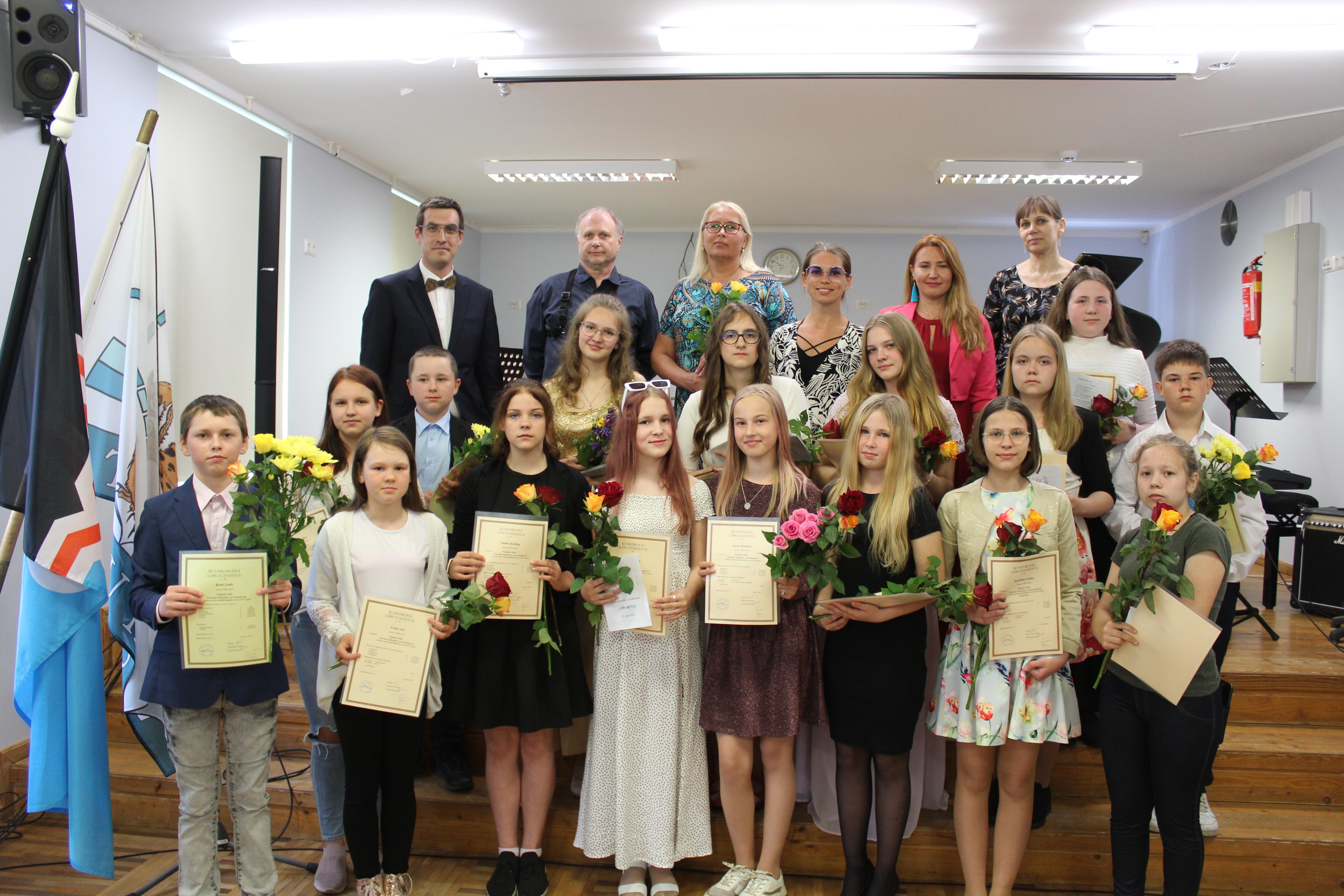 Direktor Karl Kirt ja vallavanem Alar Karu andsid üle noorema astme kunsti- ja muusikaosakonna lõpetajatele lõputunnistused ning kooli lõputunnistuse said kunstiosakonnast Lisandra Orumets (kiitusega) ja muusikaosakonnast Helina Kalamees (kiituskaart). Noorema astme lõpetas 17 noort.