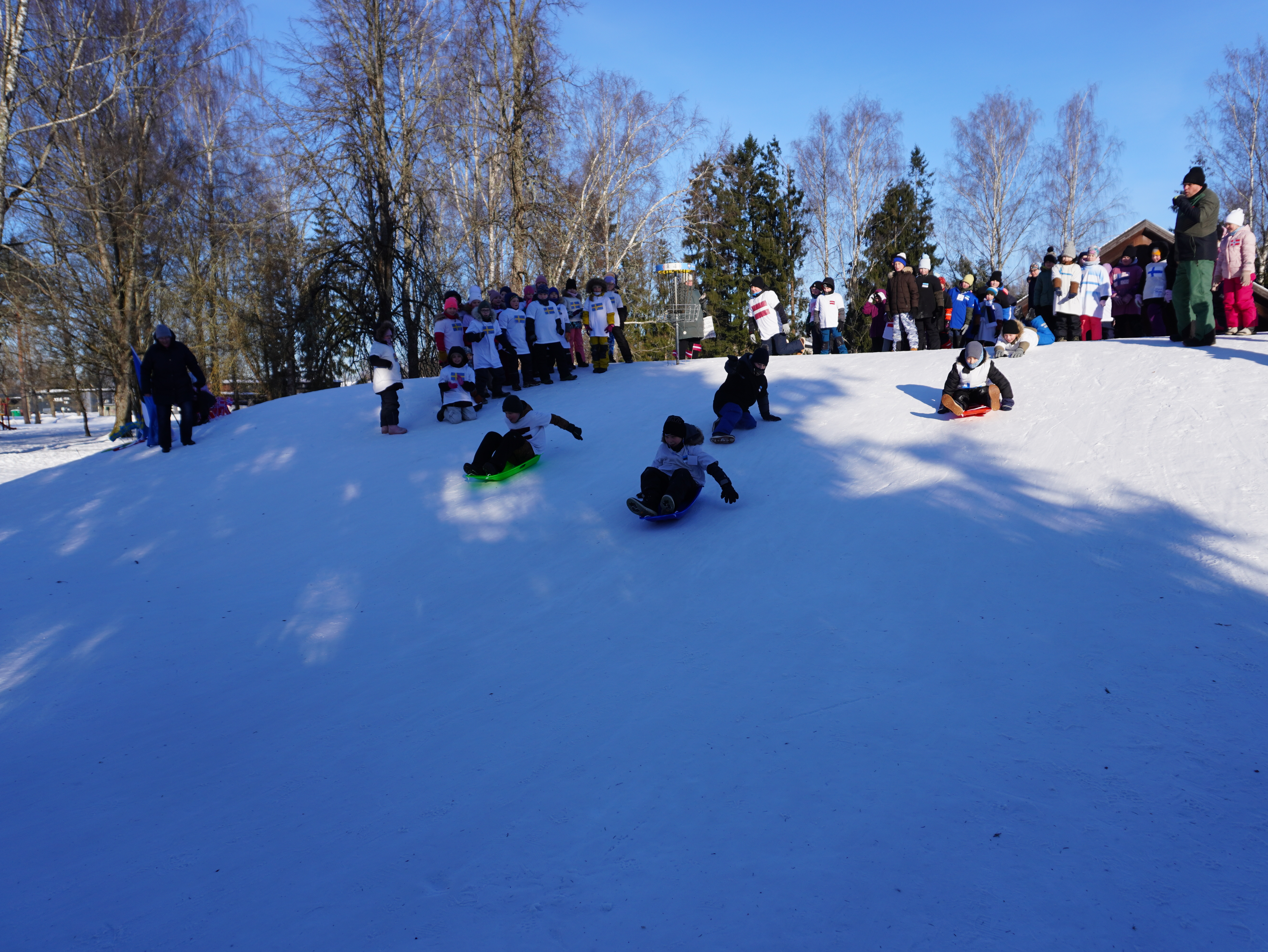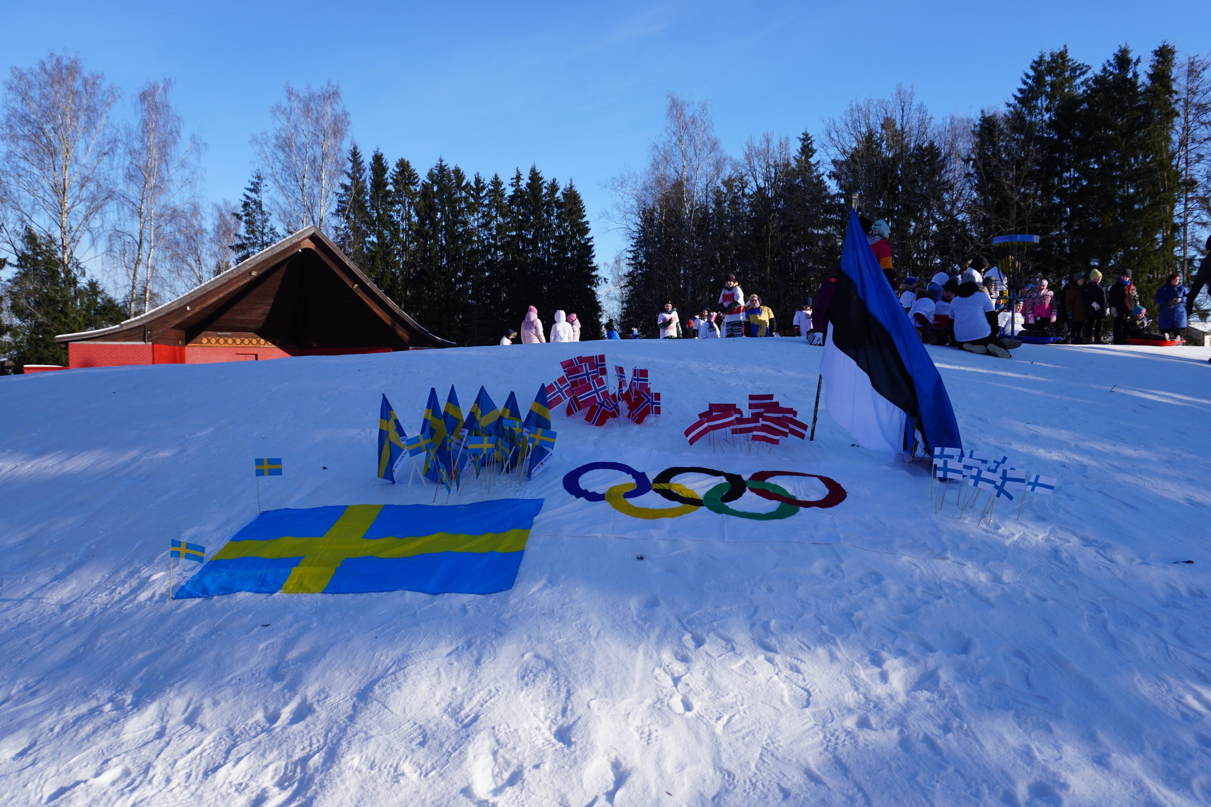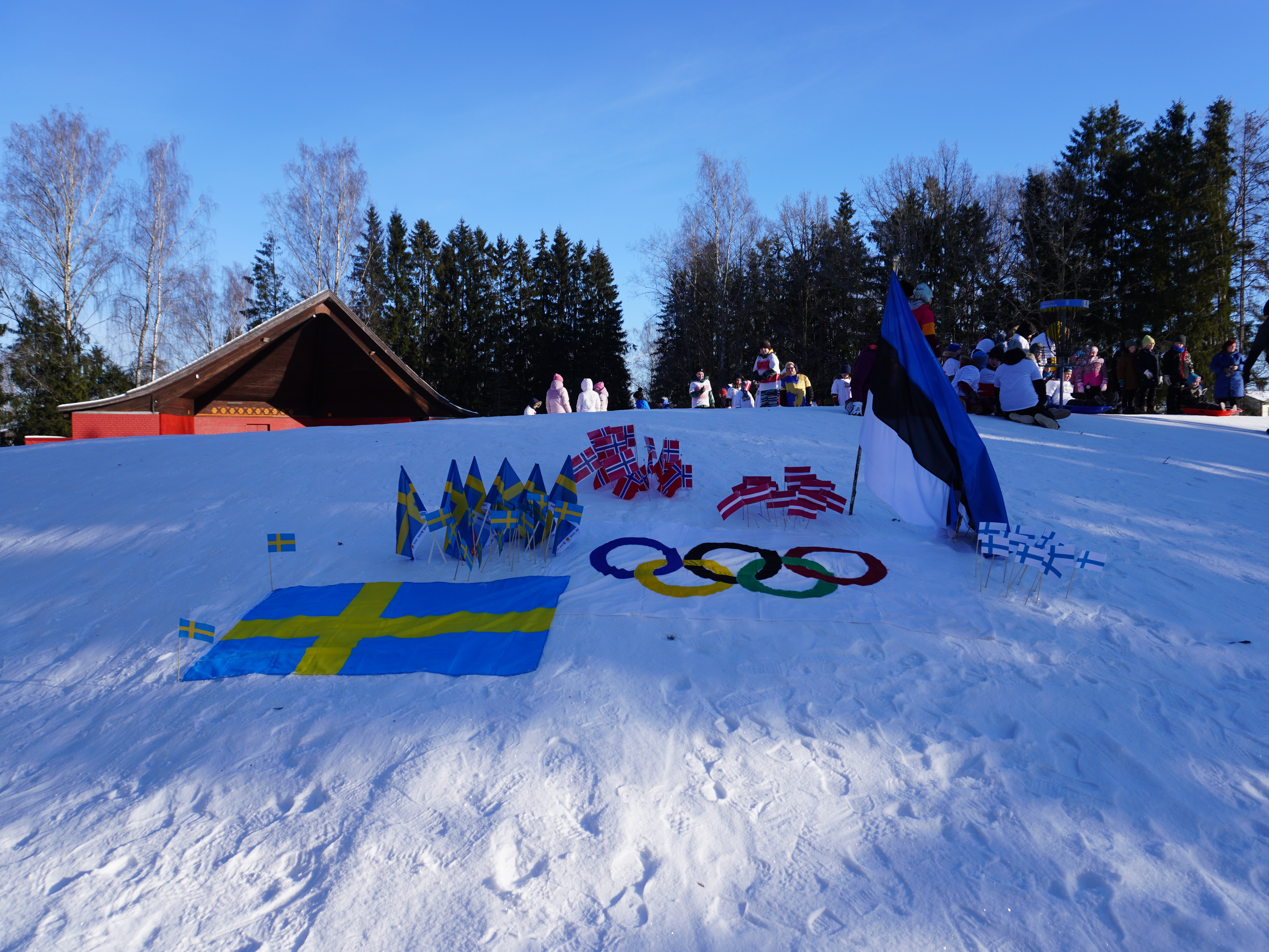 Algklasside olümpiamängud jätkusid võistlustega kelgunõlval. Norra, Norra... Rootsi, Rootsi... Eesti, Eesti...Soome, Soome... Läti, Läti... nii kostsid hõiked teatekelgutamise mõõduvõtu ajal. Pikad liud tehtud, seadsime sammud murdmaasuusatamise võistlusele.