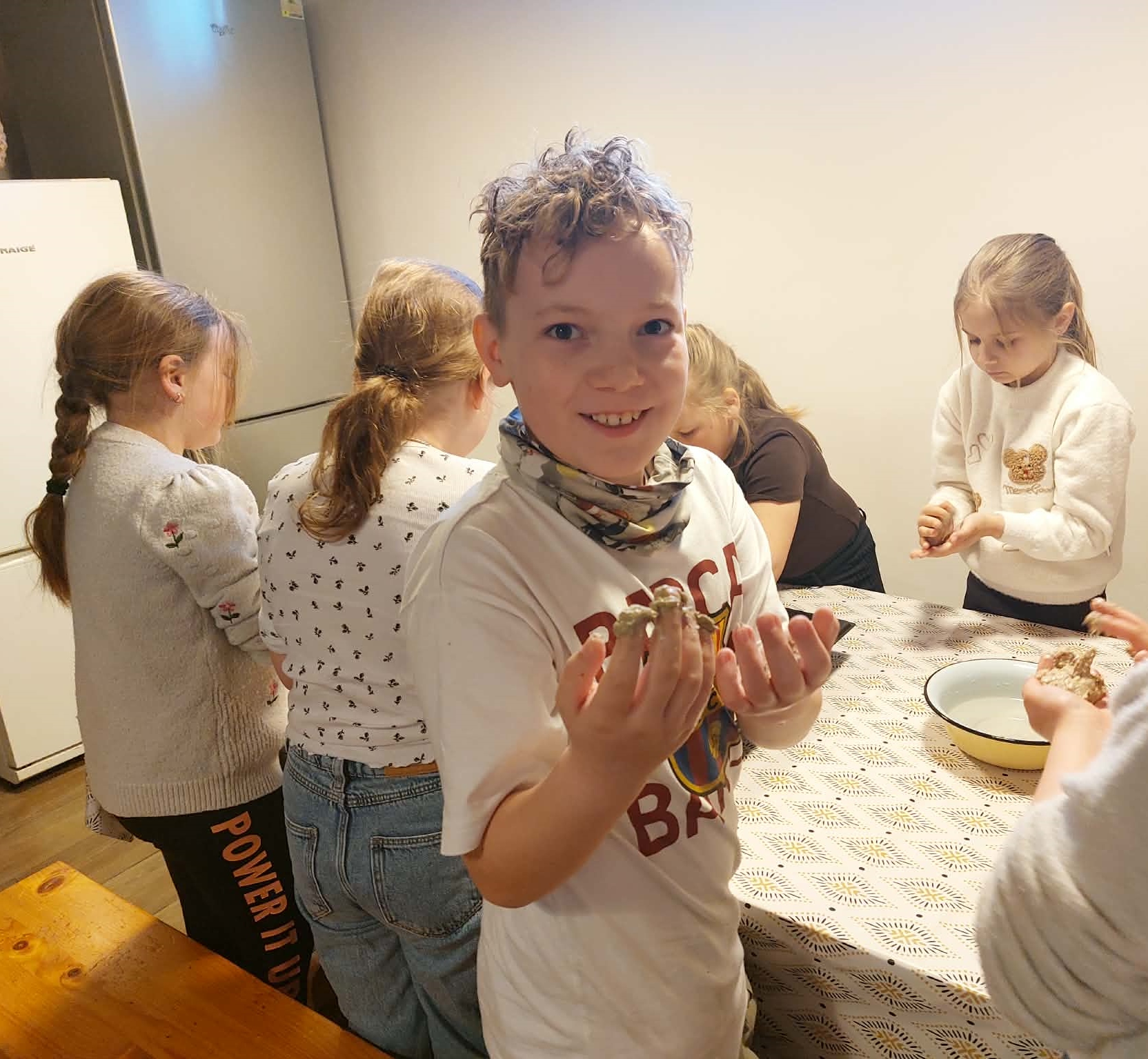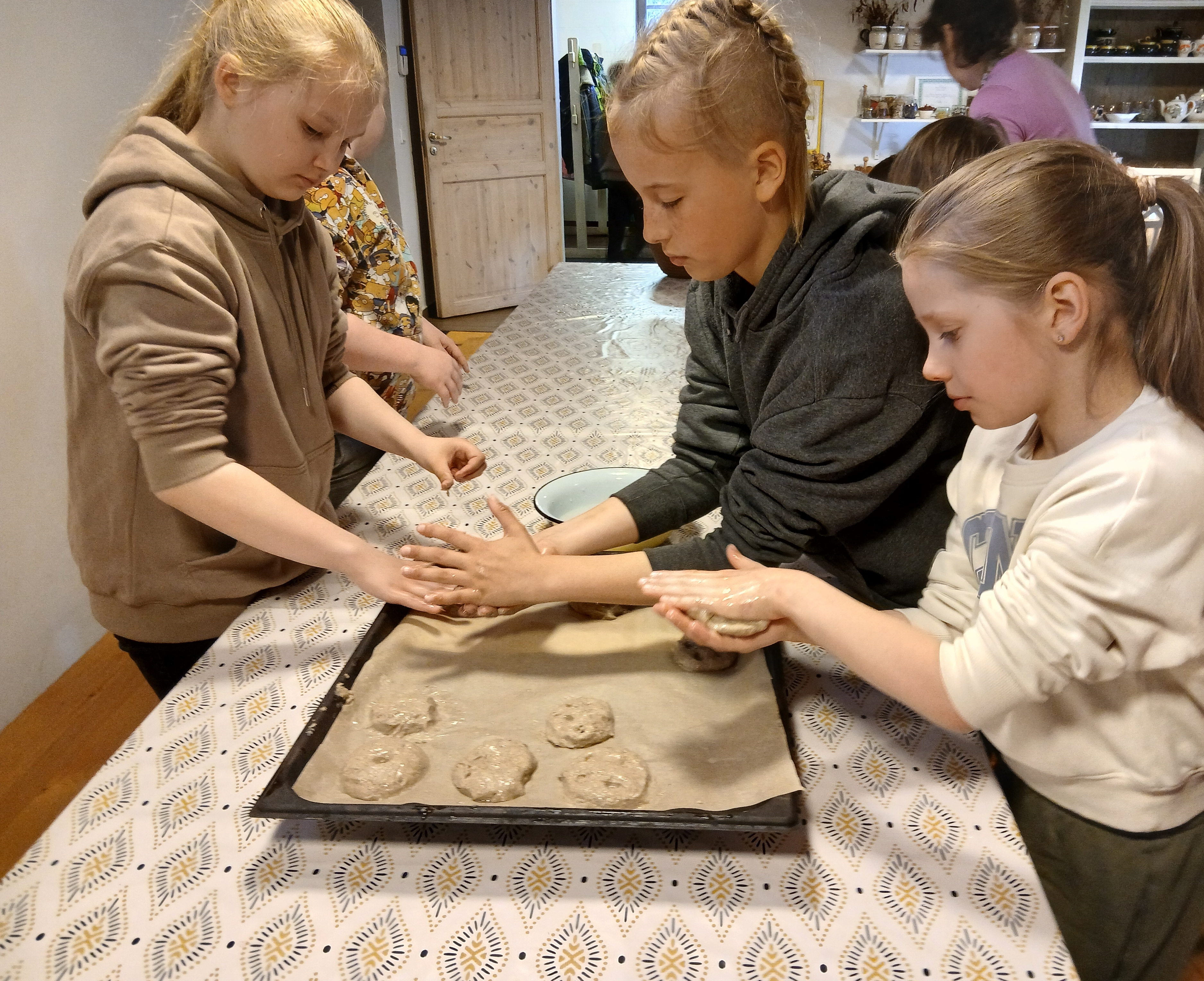 Tutvusime ajaloolise leivateo traditsioonidega ning läbisime teekonna viljaterast rukkileivani. Koos proovisime esivanemate kombel kootidega vilja peksta ja tuulata, jahvatasime erinevate tööriistadega jahu ning õppisime leivataigna tegemist. Rääkisime leiva tervislikkusest, sellega seotud kommetest ning uskumustest. Iga osaleja sai ise vormida leivakaku ja valmistada võid. Külastasime ka talulauta, kus elasid erinevad kodulinnud, poni ja küülikud.