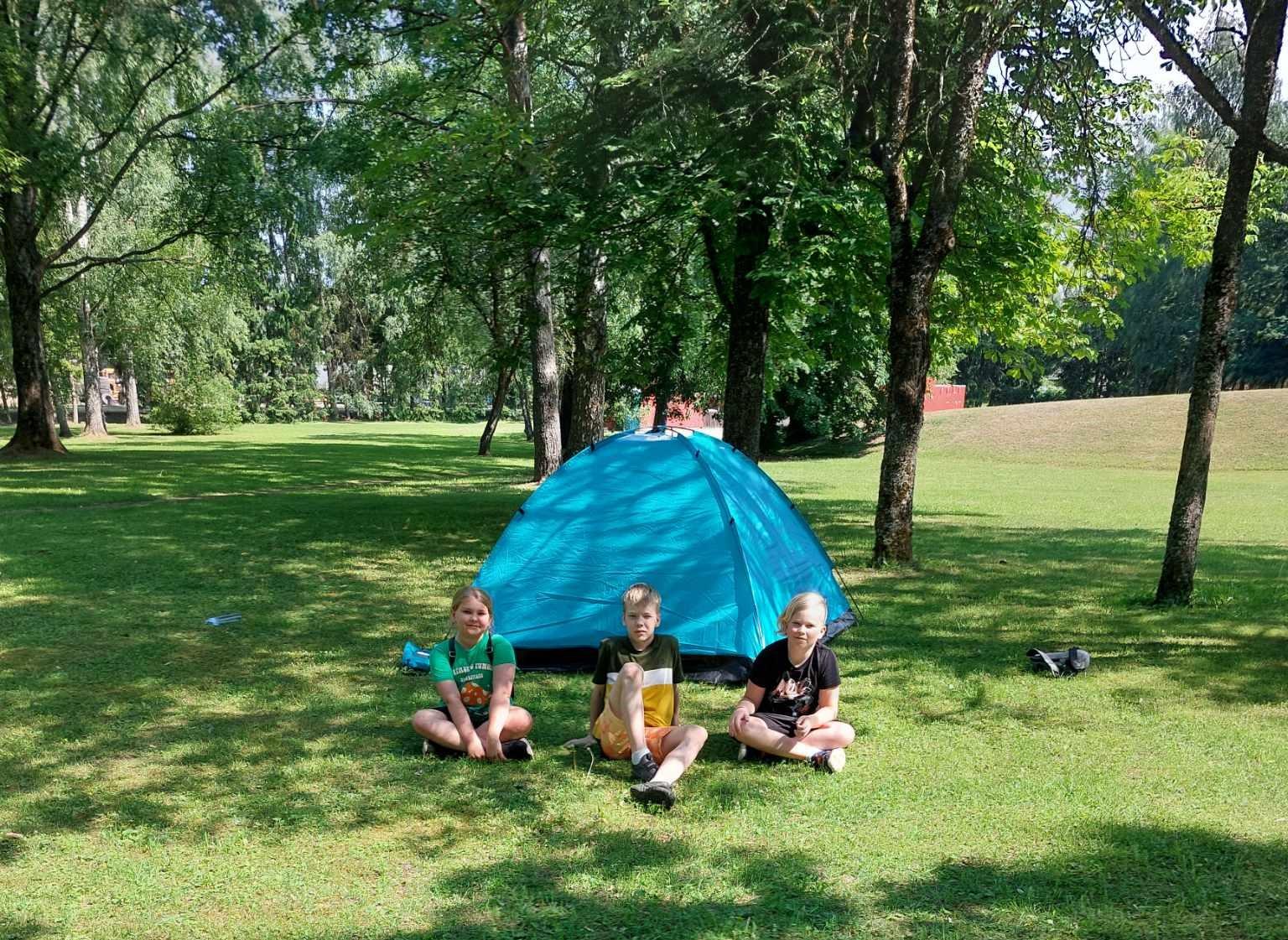 Ja karuga ka õnneks lapsed ei kohtunud. Lisaks toimus veel rattatund, kus õpetaja Marge kordas üle rattasõidu põhitõed ja õpetas lapsi telki püsti panema.