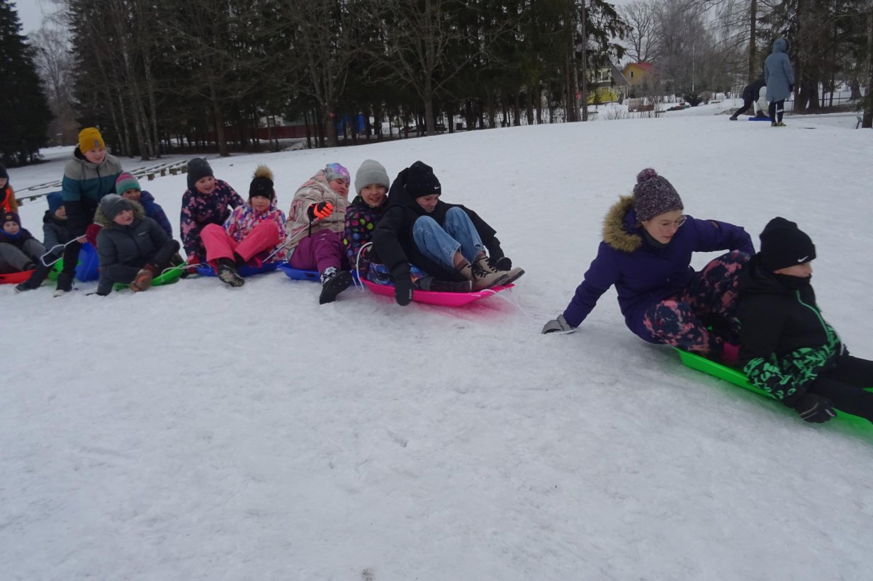 4.h klass käis teisipäeval vastalpäeva puhul kelgutamas. Vastlapäeval tuleb ikka välja selgitada, kellel pikim liug- kellel kasvavad pikimad linad