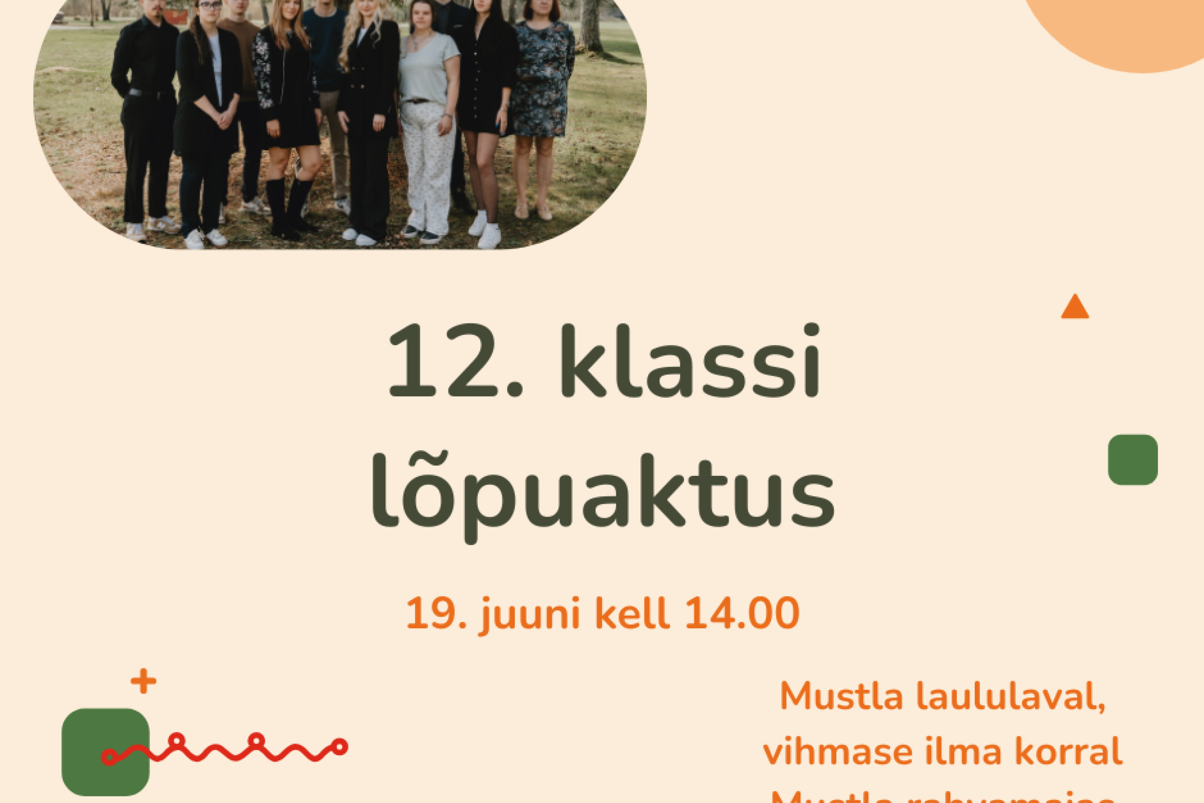 12. klassi lõpuaktus toimub 19. juunil kell 14.00 Mustla laululaval.