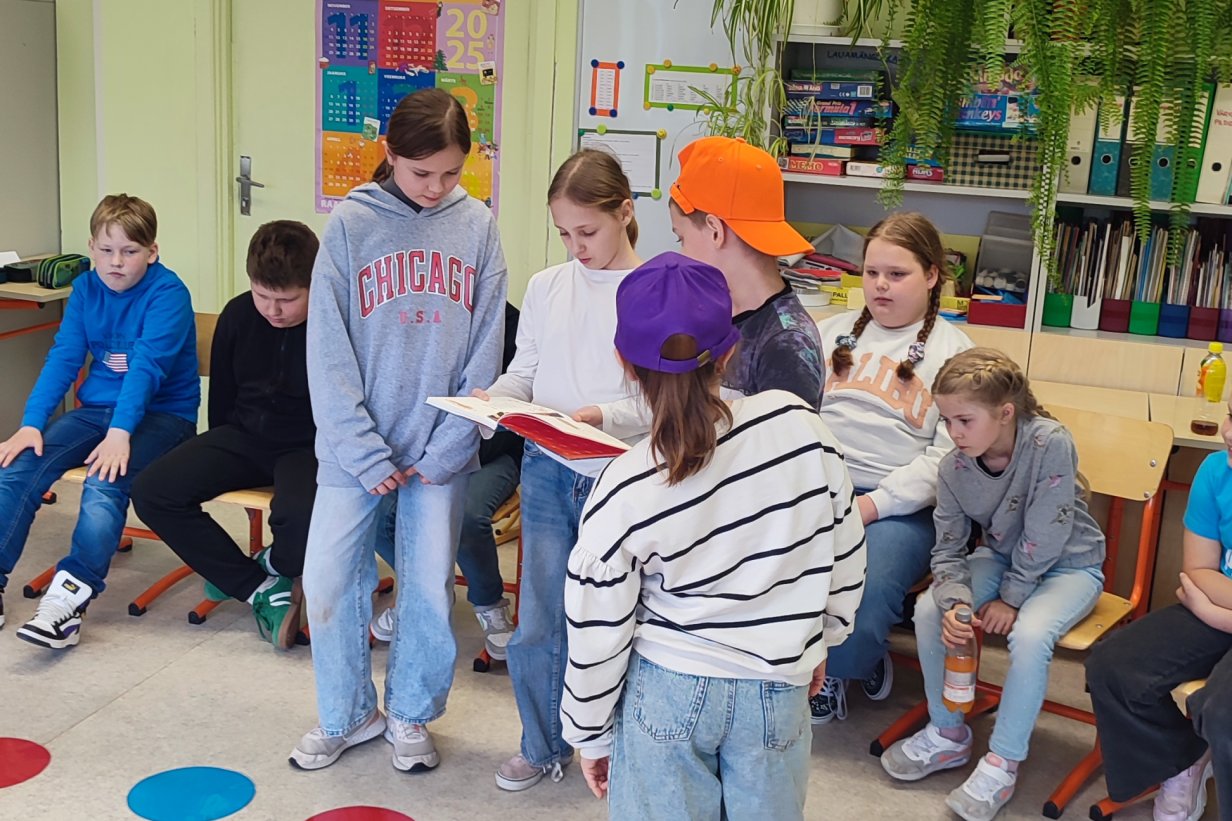 Teisipäeval, 22. aprillil said kolmandad klassid osaleda väga põnevas tunnis. Meile olid tulnud külla Viljandi raamatukogust Anneli Kengsepp ja Veronika Raudsepp, kes korraldasid lastele "Luuleduelli". See oli nagu suur lauamäng, kus mõlema võistkonna üks liige oli mängunupuks ja teised said kordamööda veeretada täringut ja seejärel lugeda luuletust, milleni mängunupp oli liikunud. Mõnikord tuli luuletusi lugeda hoopis väikese vimkaga - luksudes, hüpates, lauldes ja nii edasi.
