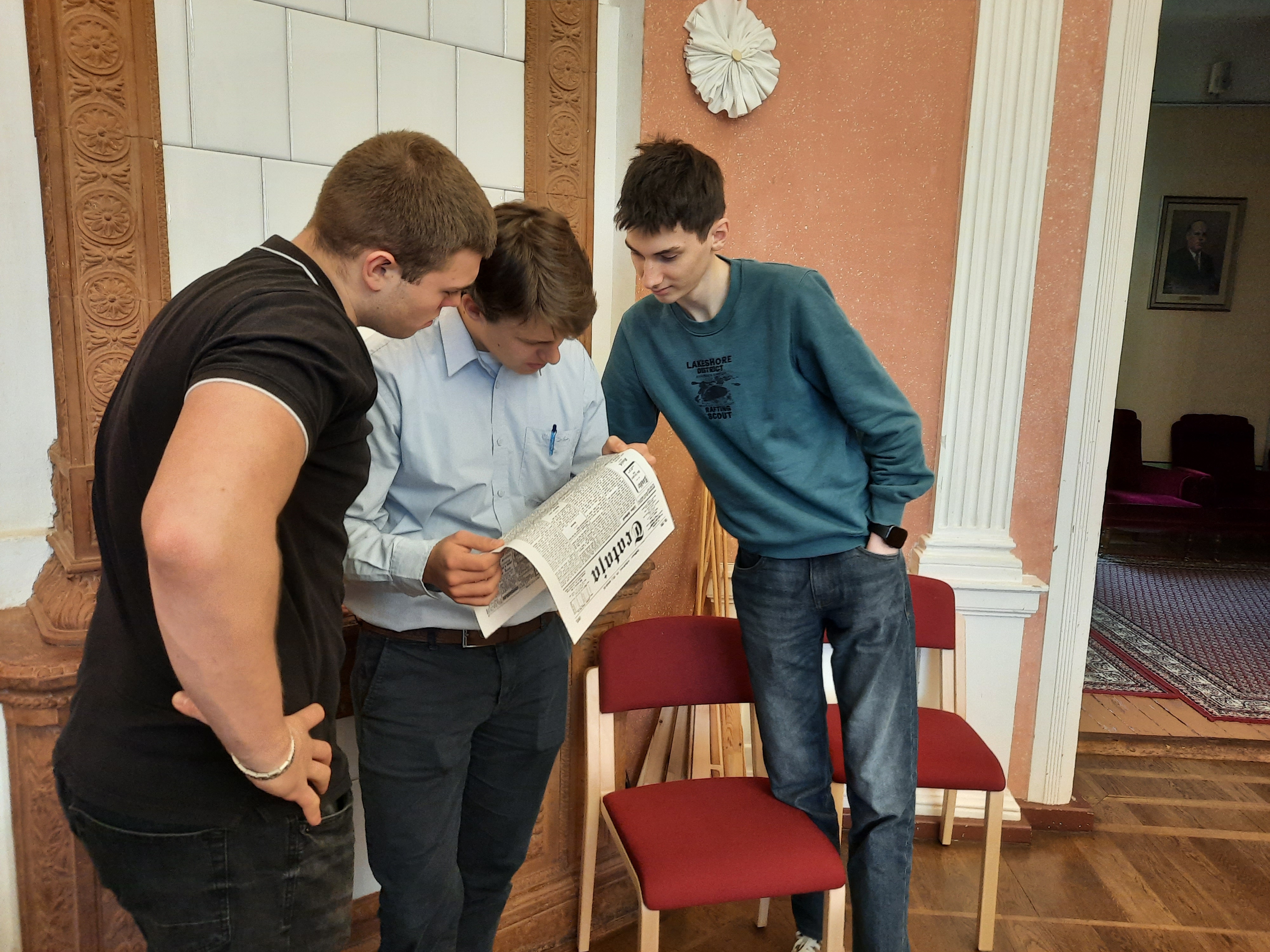 Alustasime ajalehest "Teataja" Nikolai II manifesti lugemisega. Sellega oli omajagu peamurdmist, sest leht oli gooti kirjas trükitud 🙂 Siis arutlesid kohalikud talumehed paari linnast kohale tulnud agitaatori eestvõtmisel nõudmisi, mida mõisas esitada võiks.