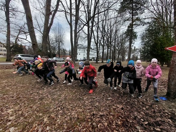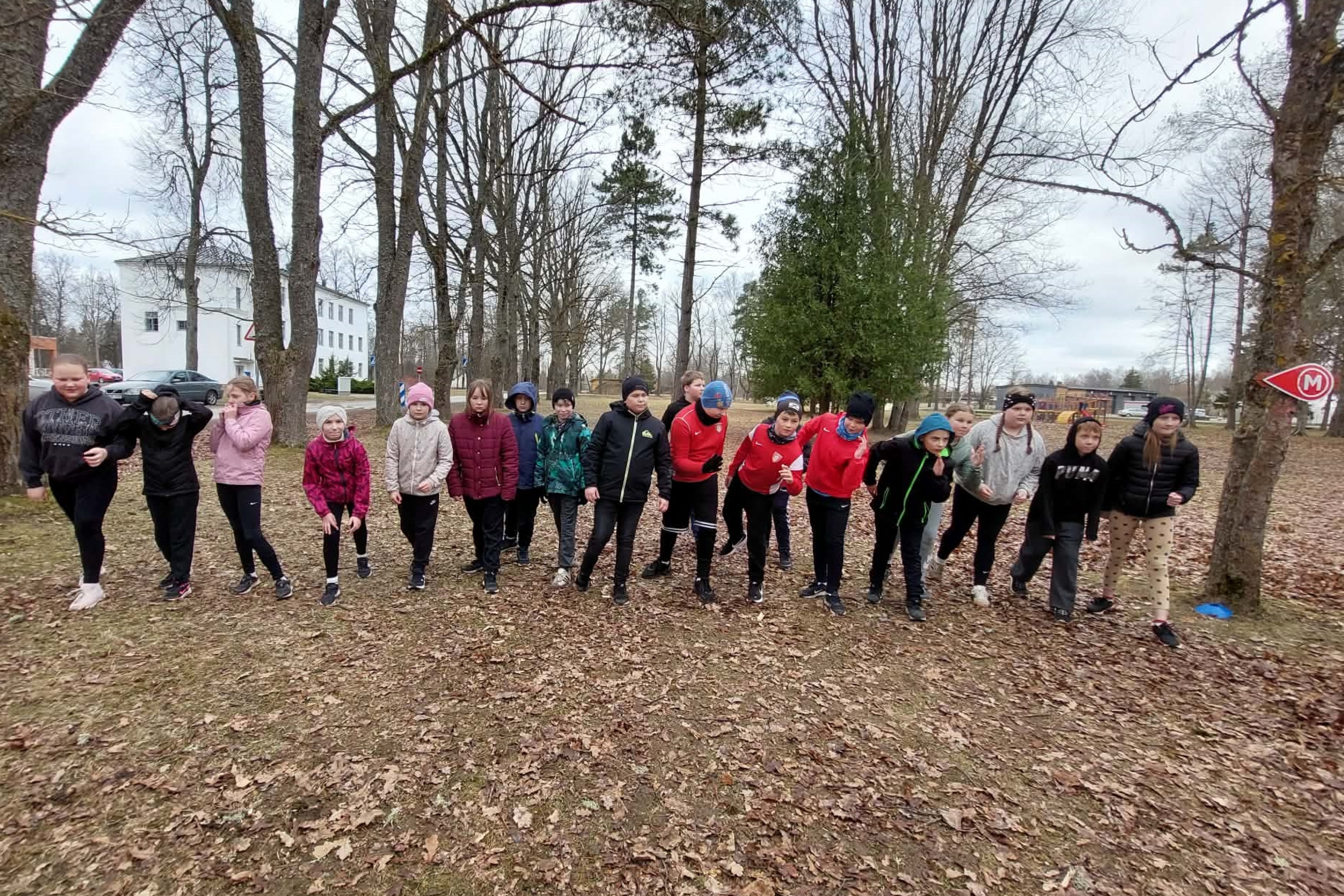 Kolmapäeval kogunesid algklasside lapsed laululava parki, et osaleda KEVADISEL KROSSIJOOKSUL. Väike soojendus ja rivistatigi klass stardijoonele.