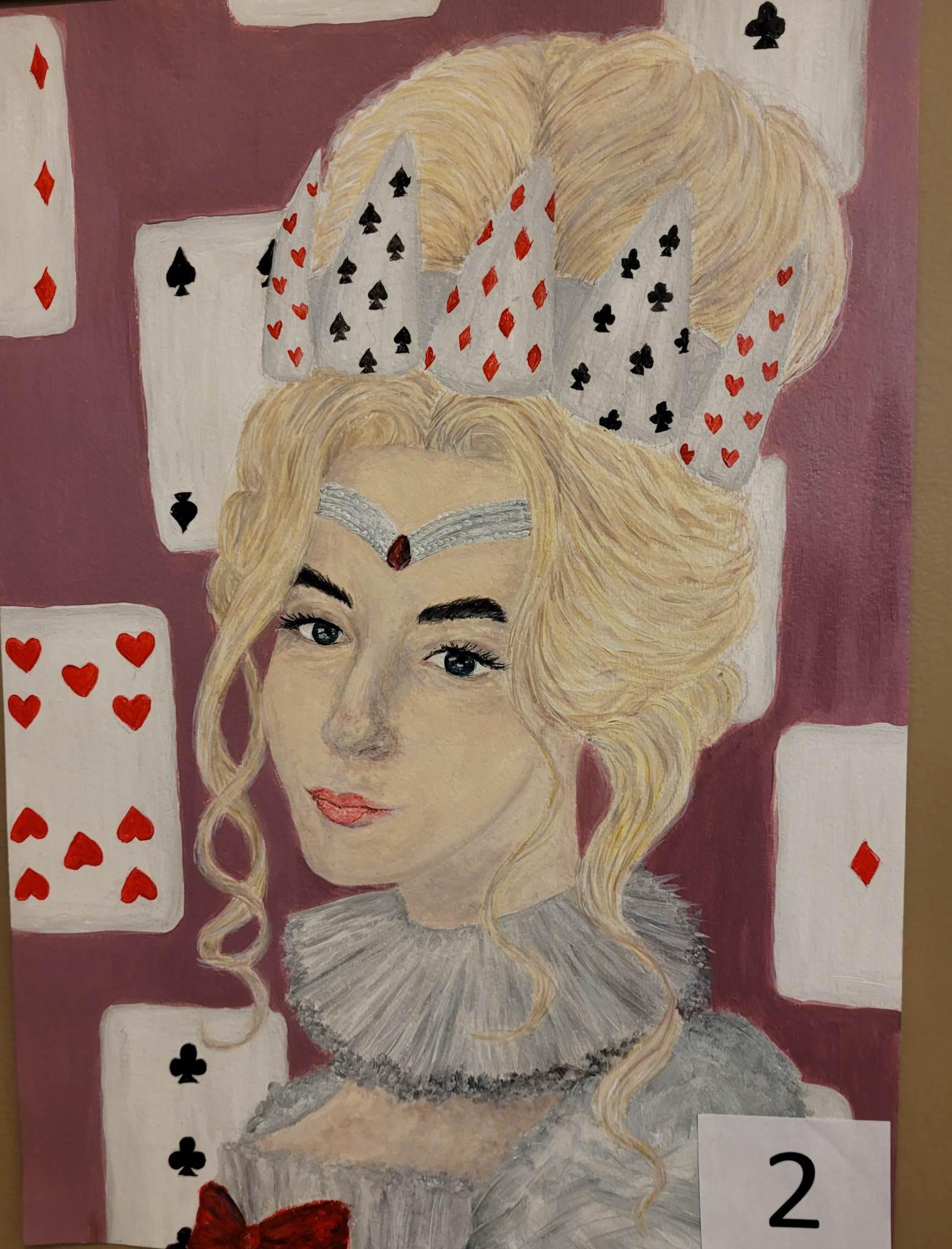 Kõikidel osalejatel tuli ettevalmistada ka kodune ülesanne. Lisandra töö on nr 12, Keiriti töö nr 2 ja Kristi töö nr 8. Töö teemaks oli "Minu kuninglik mina" rokokoostiilis autoportree.