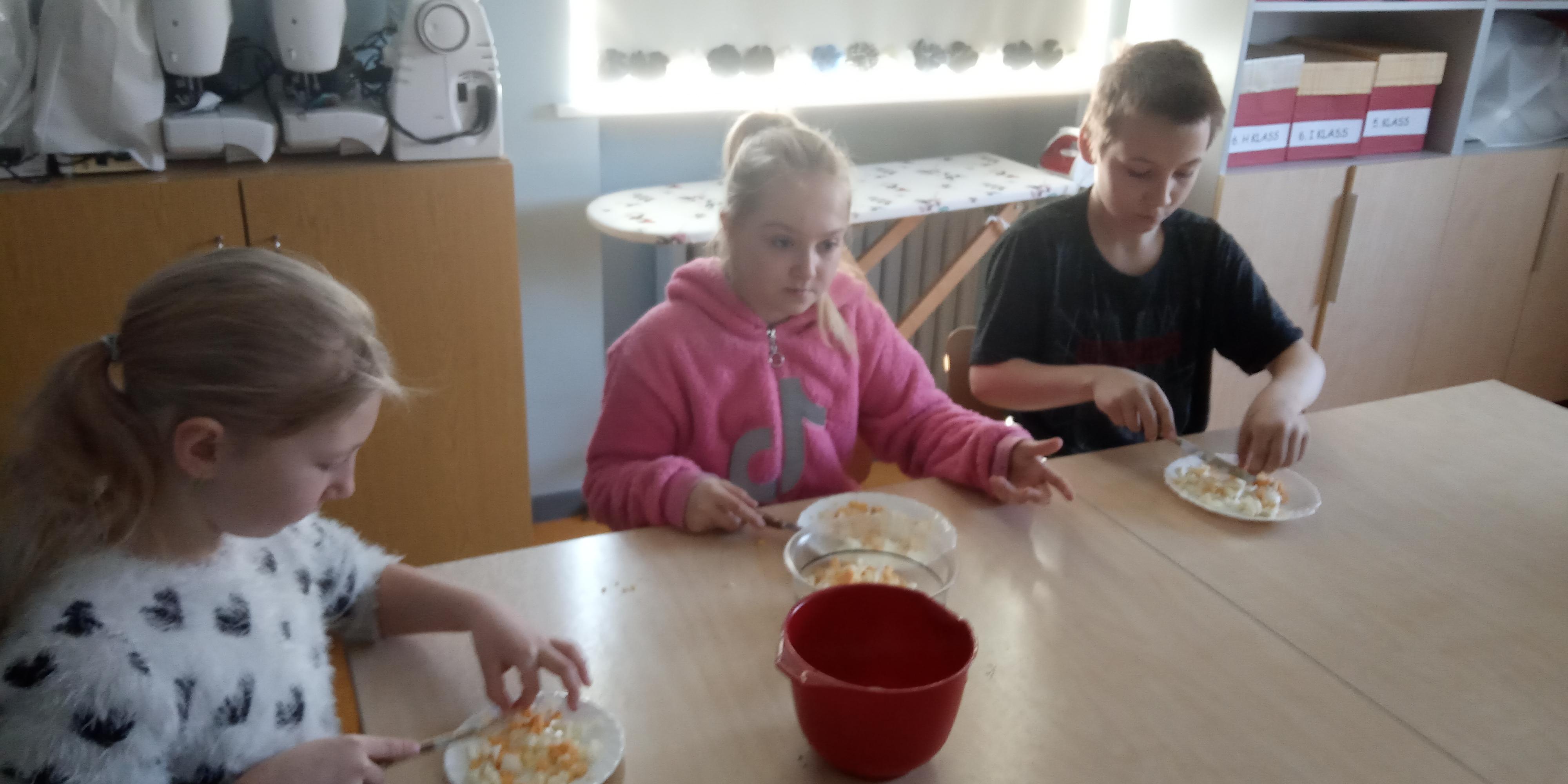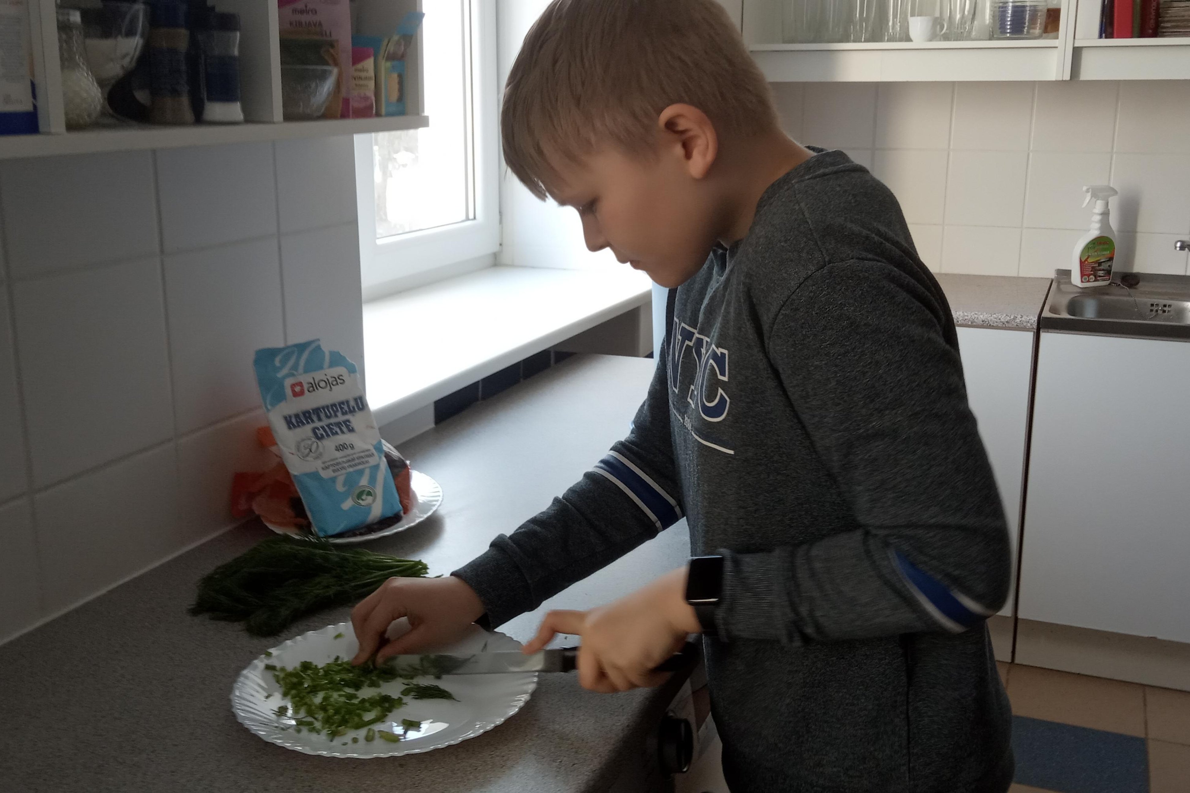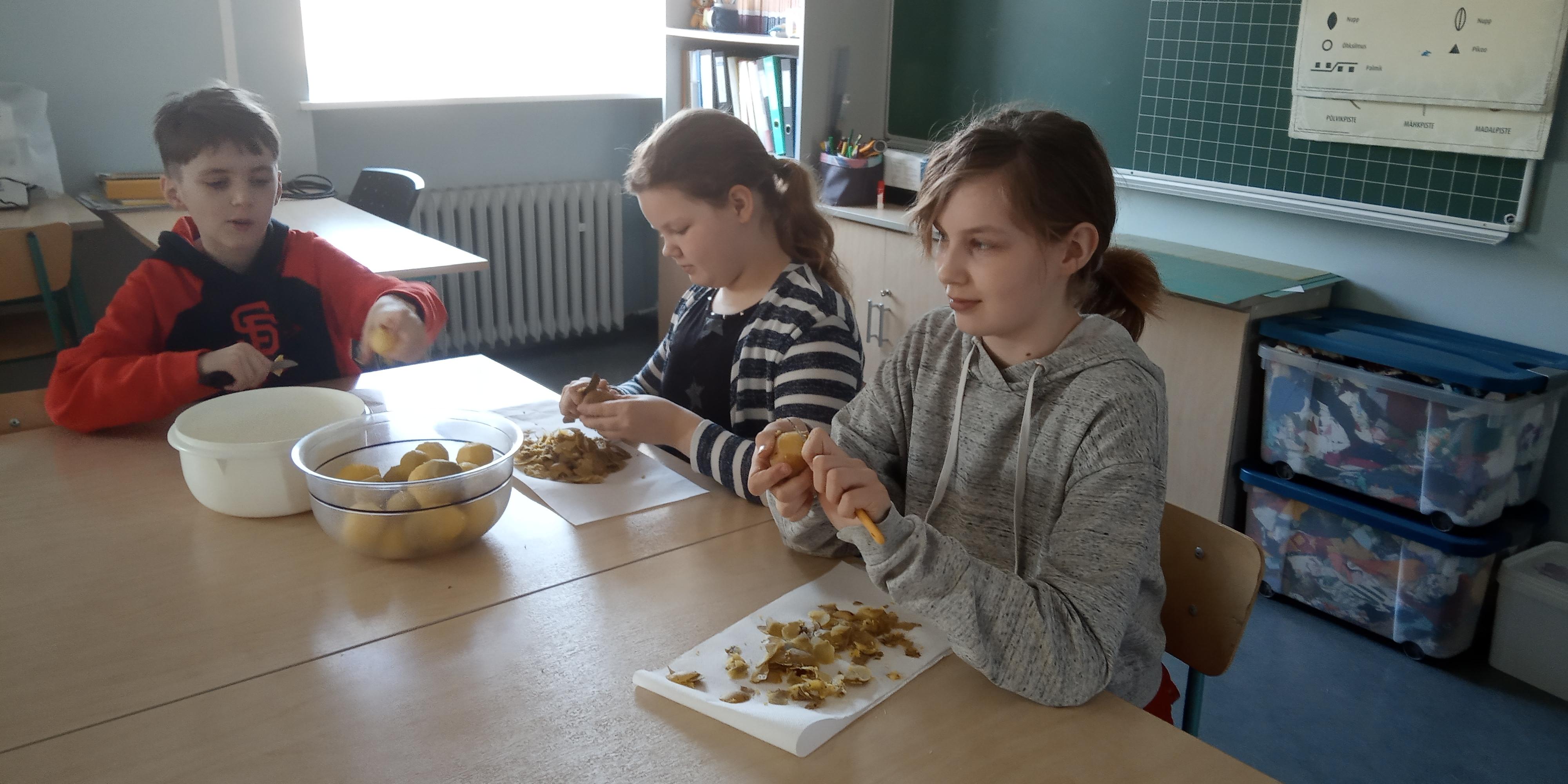 Reede, 1. aprilli hommik algas sellega, et 4. klass läks valgesse majja ja tegi seal klassiõhtuks salateid. Mõned lapsed lõikasid vorsti, teised aga sinki. Kolm õpilast koorisid kartulit ja kaks lõikusid krabipulki. Lõpuks valmis meil viis erinevat salatit. Seejärel jätkus koolipäev tavapäraselt.