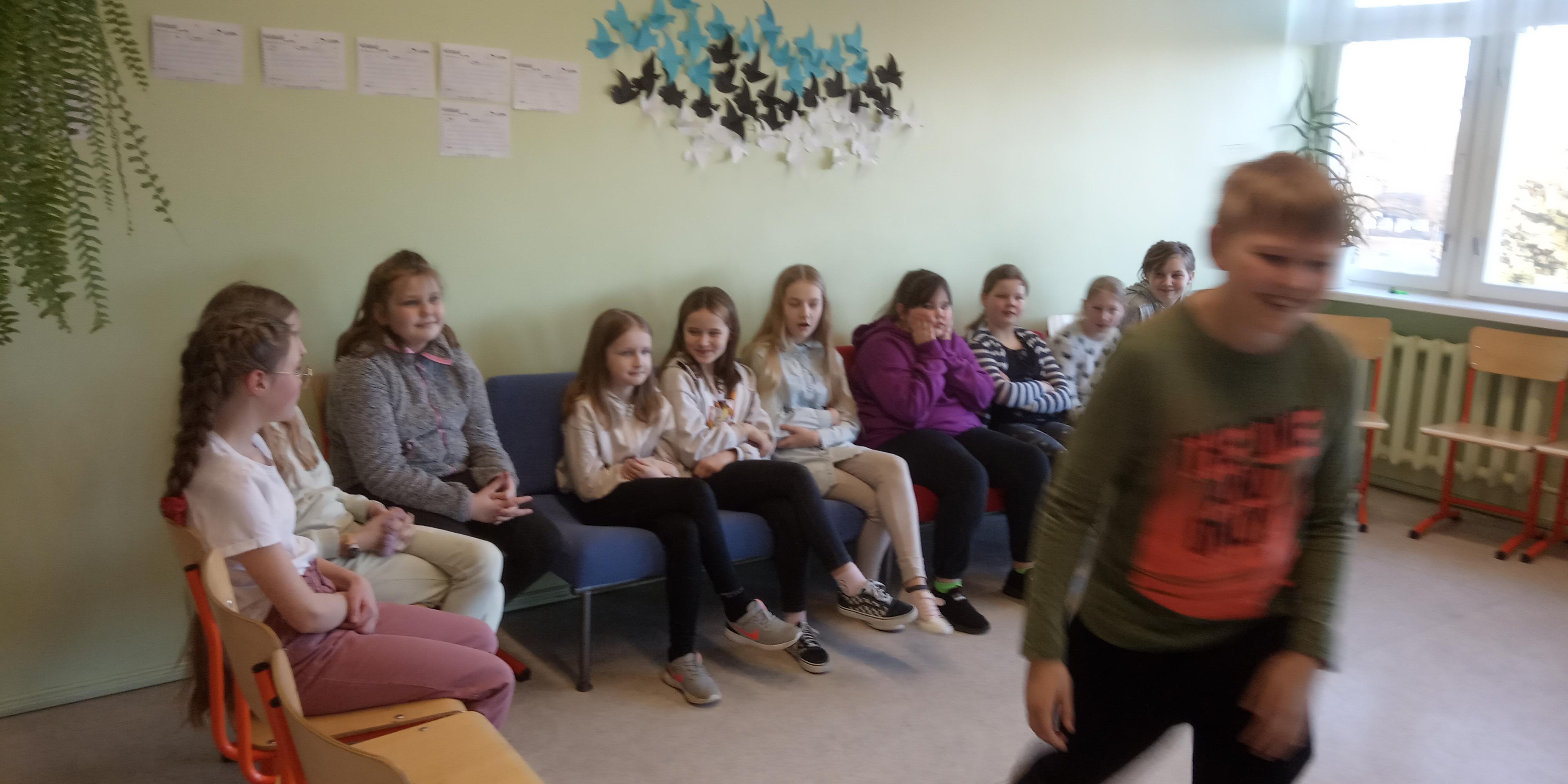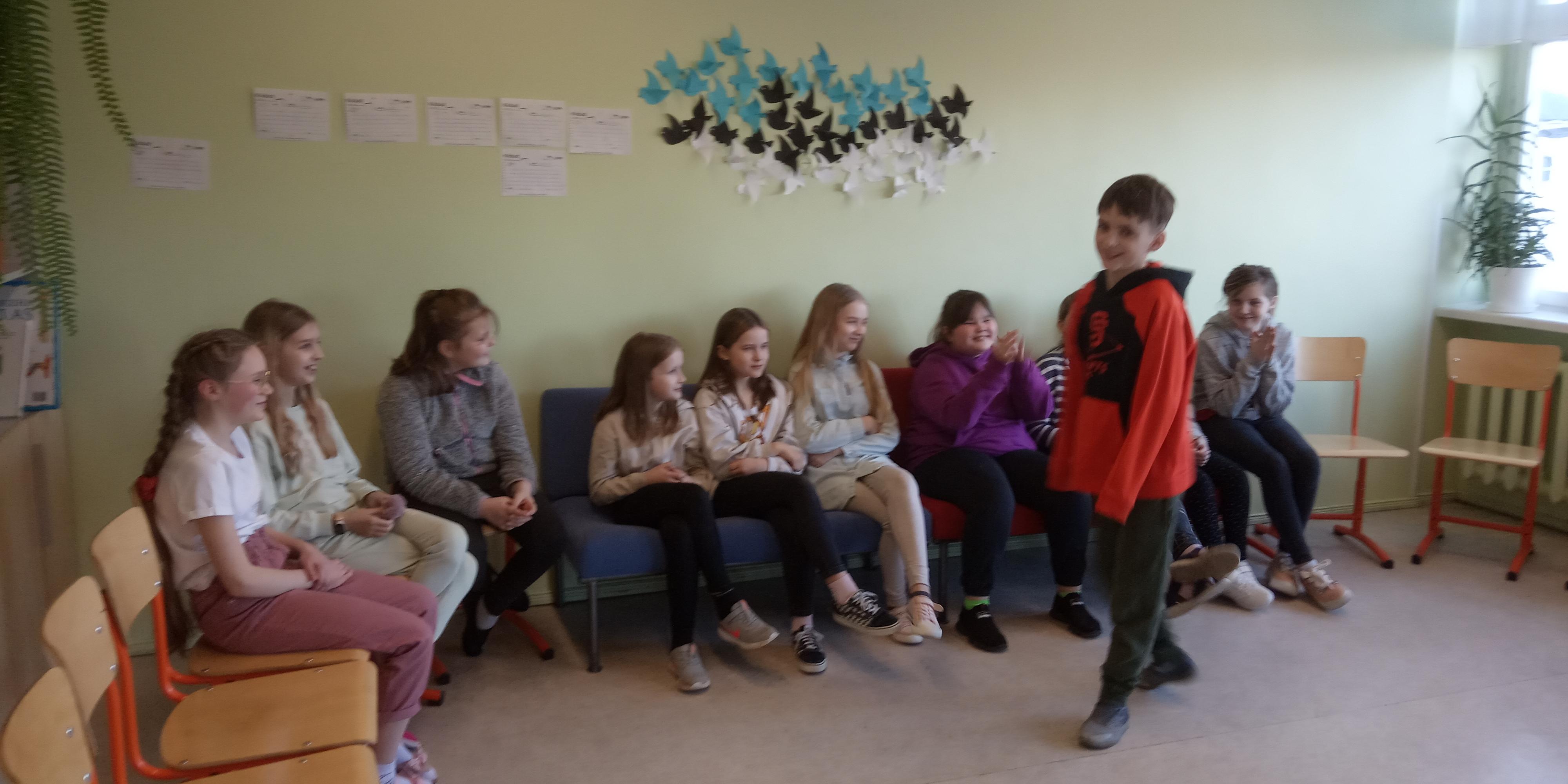 Õhtu saabudes kogunesid kõik 4. klassi õpilased uuesti koolimajja. Mõned tõid snäkke, näiteks melonit, krõpsu, nätsukomme, viinamarju ja karastusjooke. Kohale tuli 20 õpilast ja 1 õpetaja. Pakkusime erinevaid mänge mängimiseks, millest suurema osa jõudsime ka mängida. Nendeks olid - pikk nina, mõrvar, silmapilgutamine, tantsimine, telefon, Kahoot! ja peitus. Peitust mängisime siis, kui õues oli pime ning peale meie polnud enam koolimajas kedagi. Pärast vaatasime „Madagaskari“ filmi, oli disko ja vaba aeg. Öörahu saabus peale kella kahtteist.