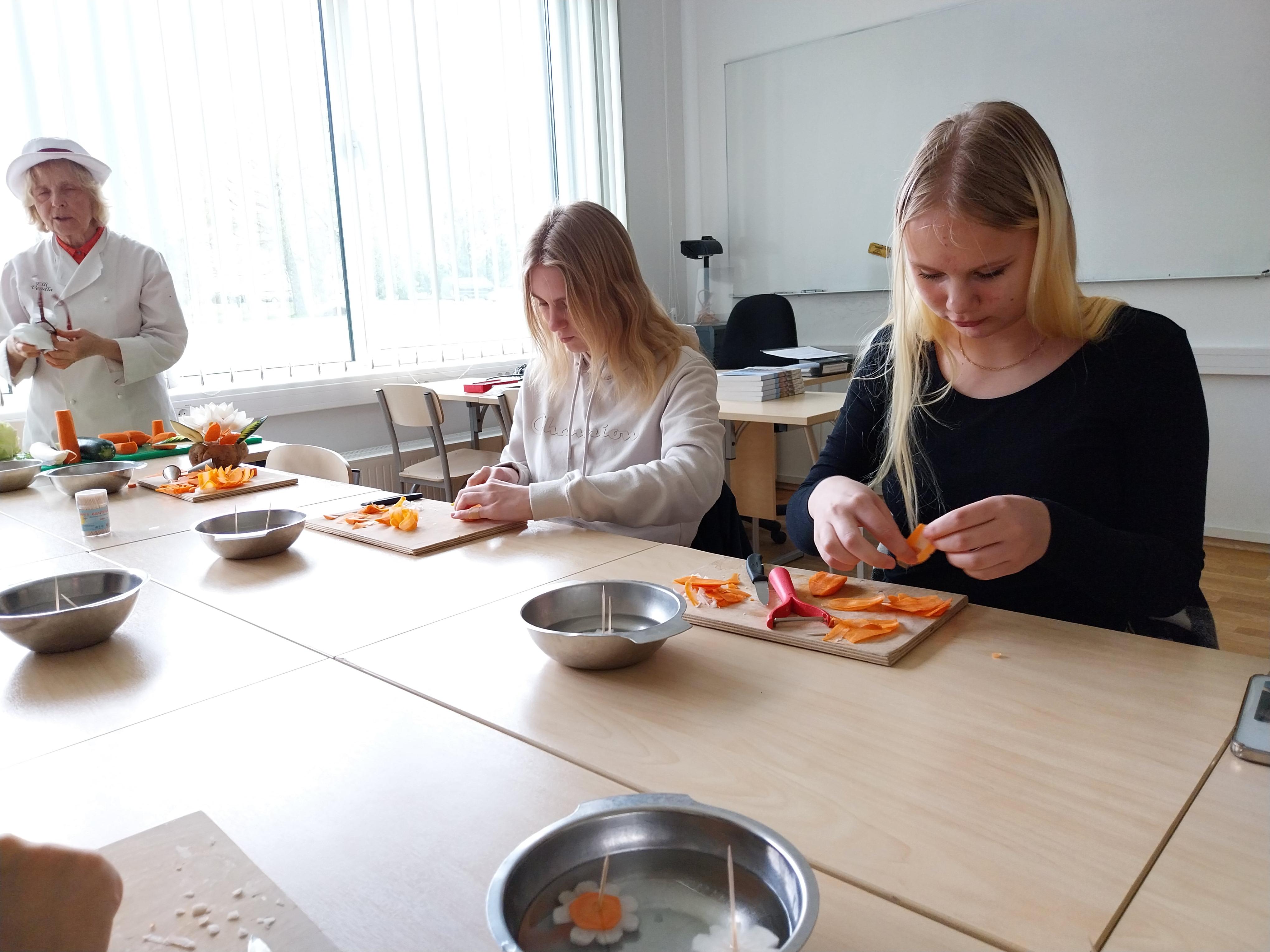 Kõigepealt tutvusime koolis õpetatavate erialade ja erinevate õppehoonetega. Seejärel töötoas valmistas üks grupp kebabi ja kotlette ning teine fruktodisaine.