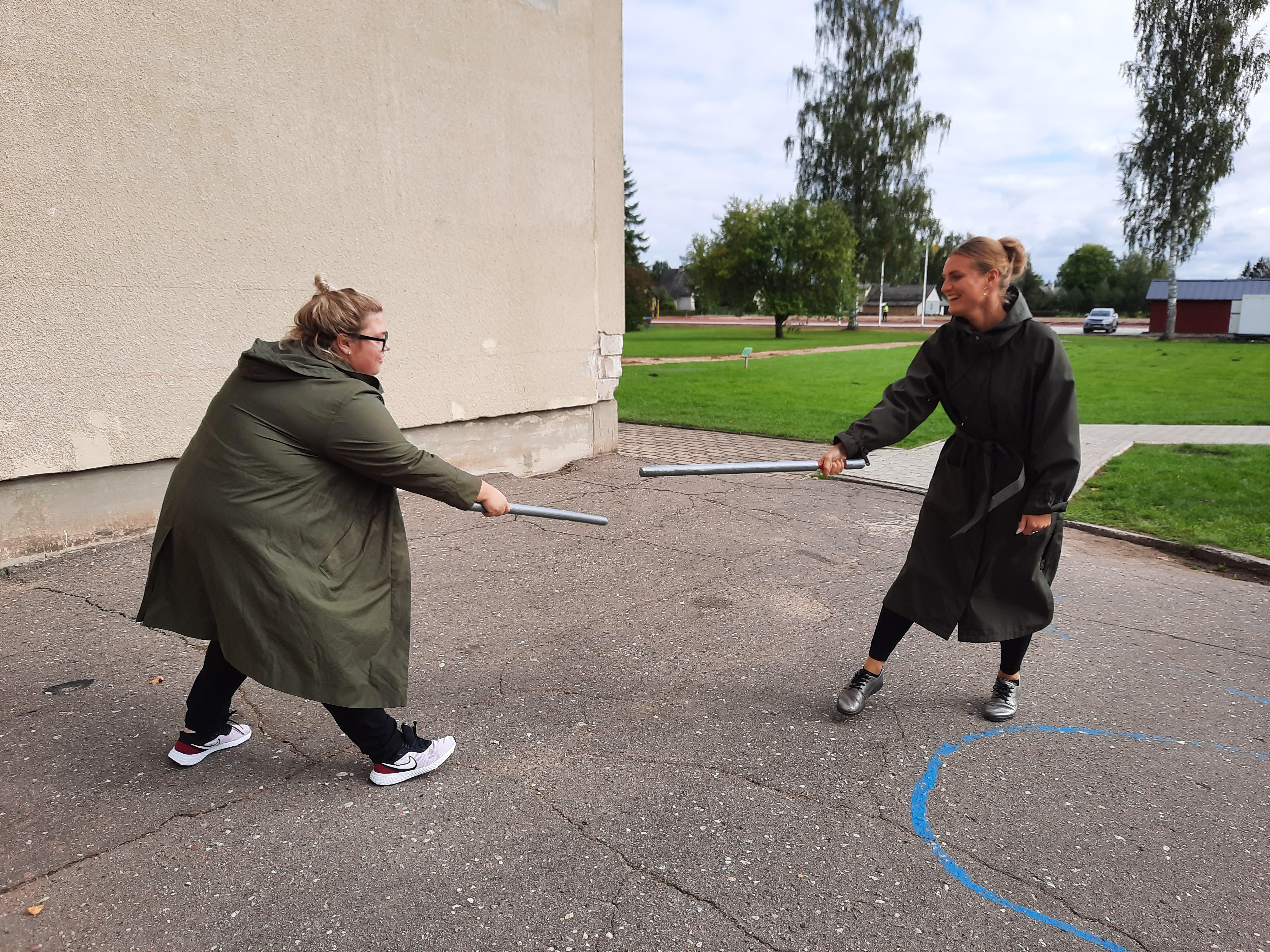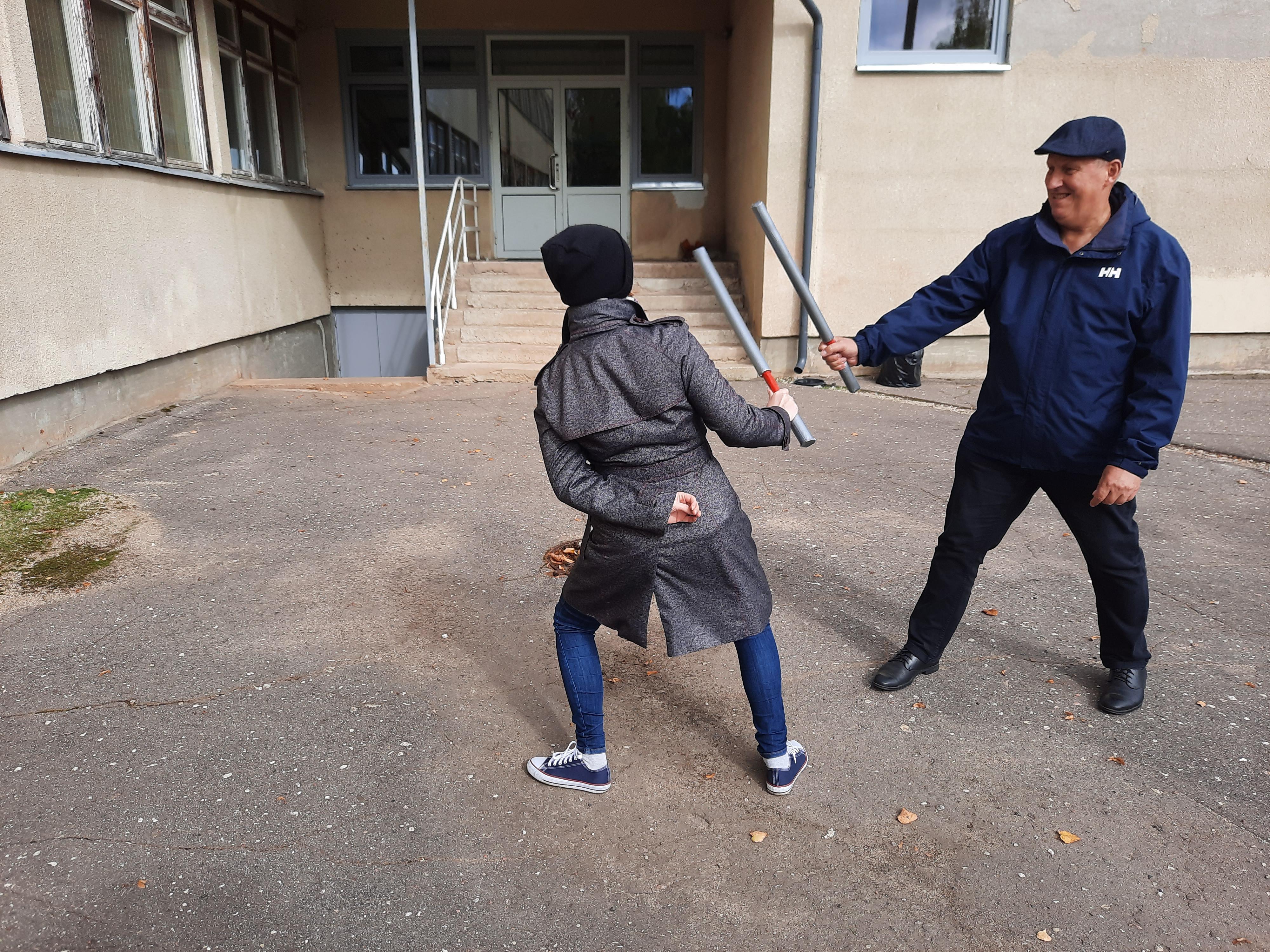 MTÜ Mõõgavennad korraldas neile, peale sissejuhatavat loengut ning ohutuse suhtes instrueerimist, pehmikmõõga valmistamise töötoa ja viis läbi esimese mõõgavõitlustreeningu. Õpetajateks olid Tauno Kobin ja Karl Ilves. Kõik olid peale pikka bussisõitu vapralt valmis ennast liigutama ja jäid täitsa terveks, traumasid keegi ei saanud.
