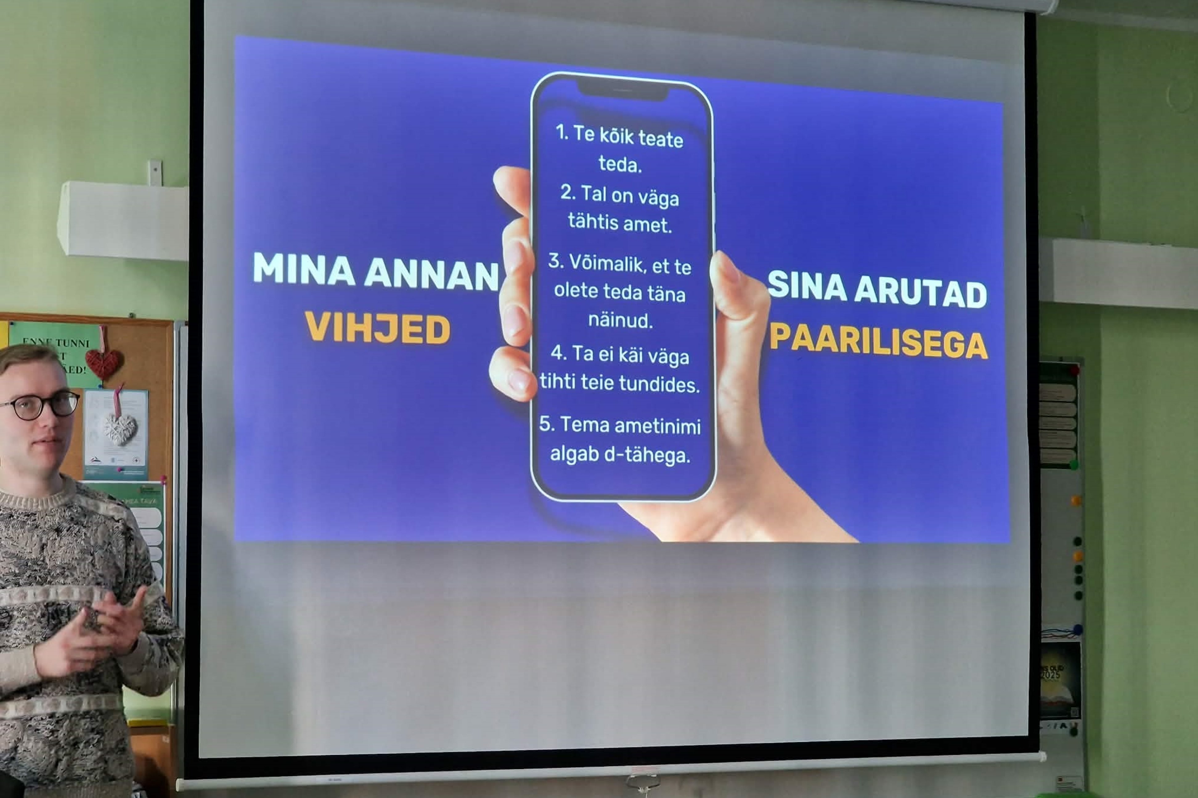 5. - 9. klassi õpilaste tunni teemaks oli digikeskkondade ja AI turvaline kasutamine. Arutleti valeinfo tunnuste, internetis nähtu kriitilise hindamise üle. Mängiti läbi, kuidas internetis öeldud sõnad ennast ja kaaslasi mõjutavad.