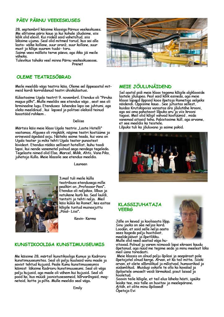 4. klassi õpilased omandavad esmased oskused fotograafia ja ajakirjanduse valdkonnas. Meediakursuse lõputööks on oma klassi ajalehe väljaandmine.