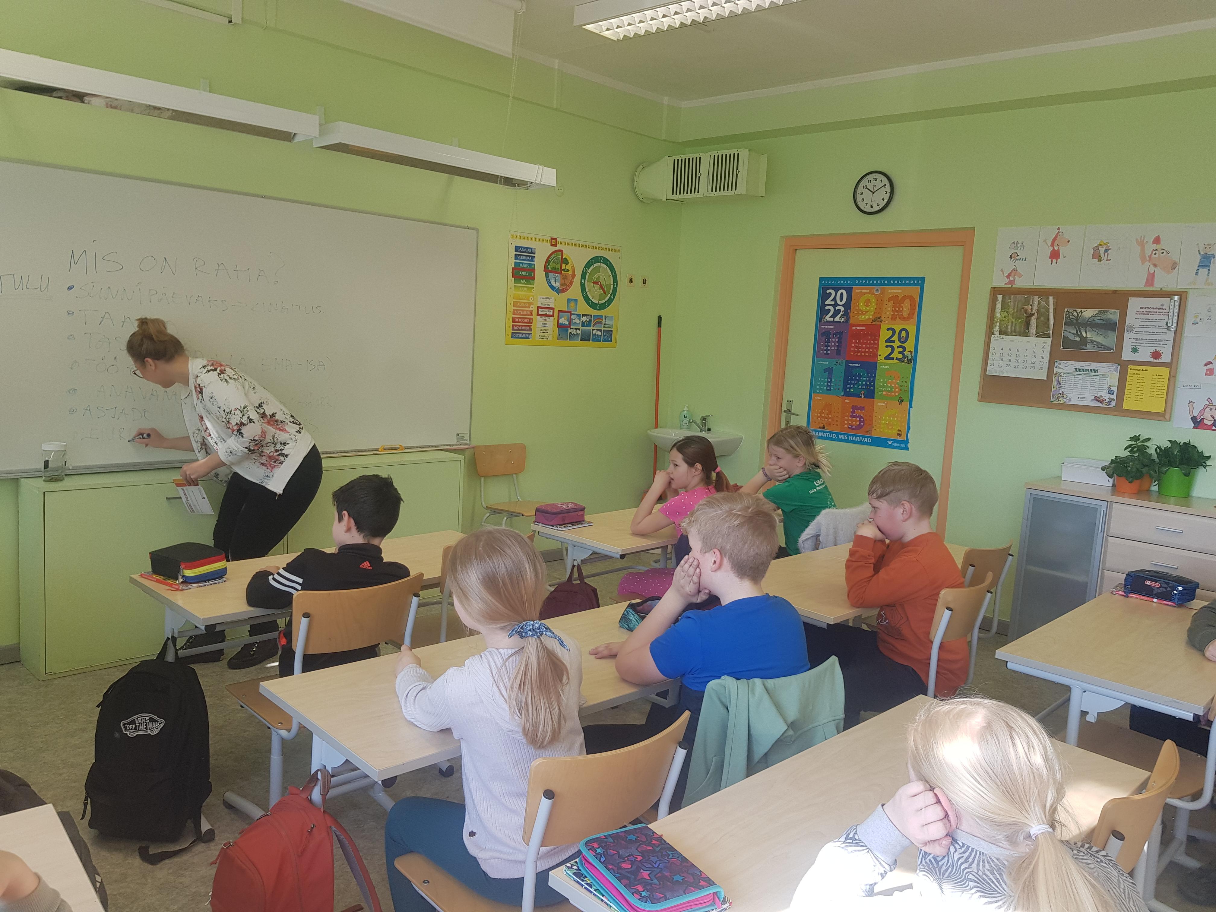 Täna andis Küllike Pihlaplink opens on new page Tarvastu Gümnaasiumlink opens on new pagei 3-4 klassile rahatarkuse tunde.