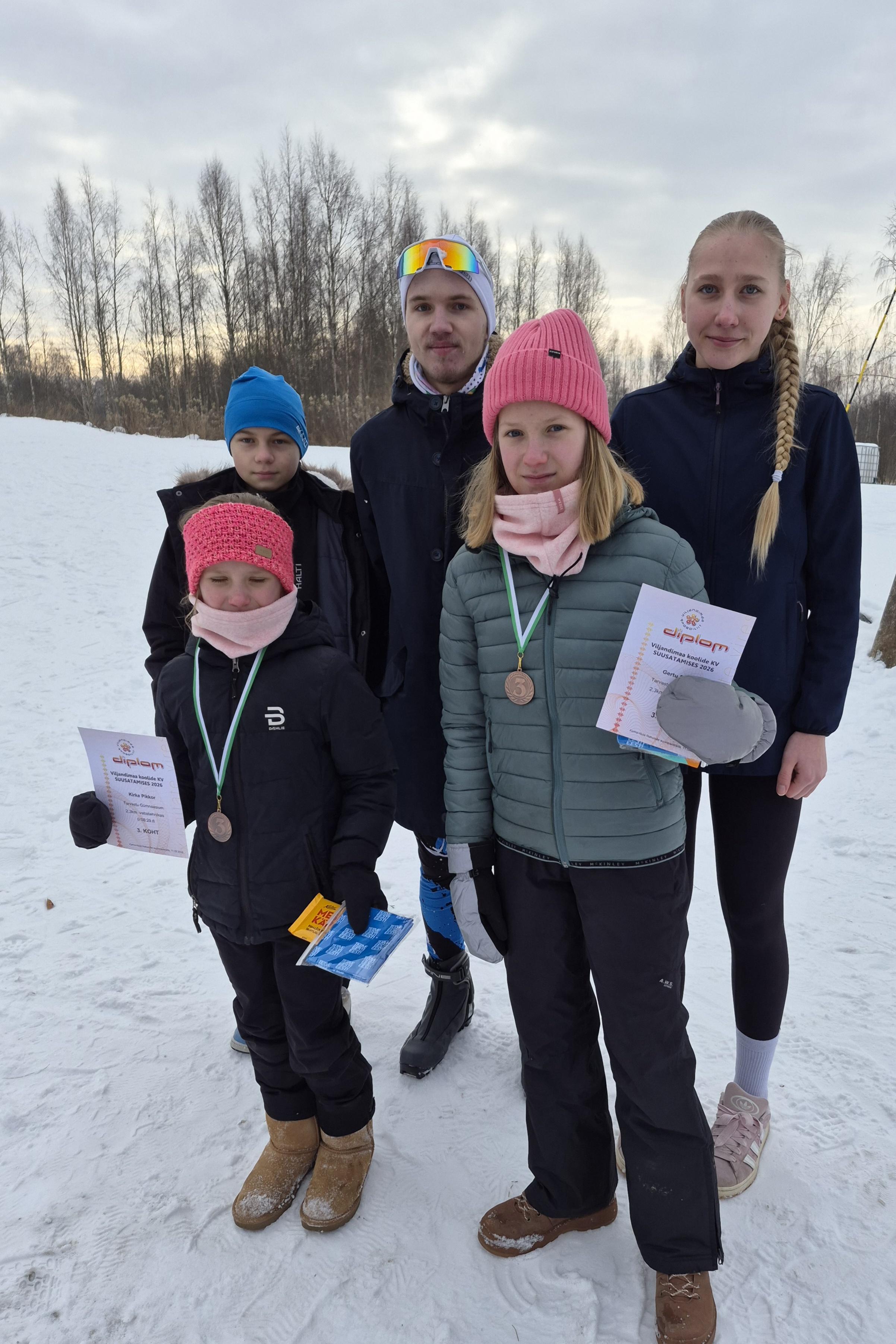 Kolmapäeval, 11. veebruaril Karksi-Nuia Rahumäe terviserajal toimunud Viljandimaa koolide suusavõistlus kulges Tarvastu Gümnaasiumi sportlastele edukalt ja lõppes heas sportlikus vaimus. Soosivad ilmastikuolud ning korraldajate hea ettevalmistus tagasid sujuva võistluspäeva. Päike piilus pilvede tagant ja lumi krudises mõnusalt suuskade all. Kõik osalejad andsid endast parima. Rajal nägi kiireid kihutajaid kui ka vapraid lõpuni pingutajaid.