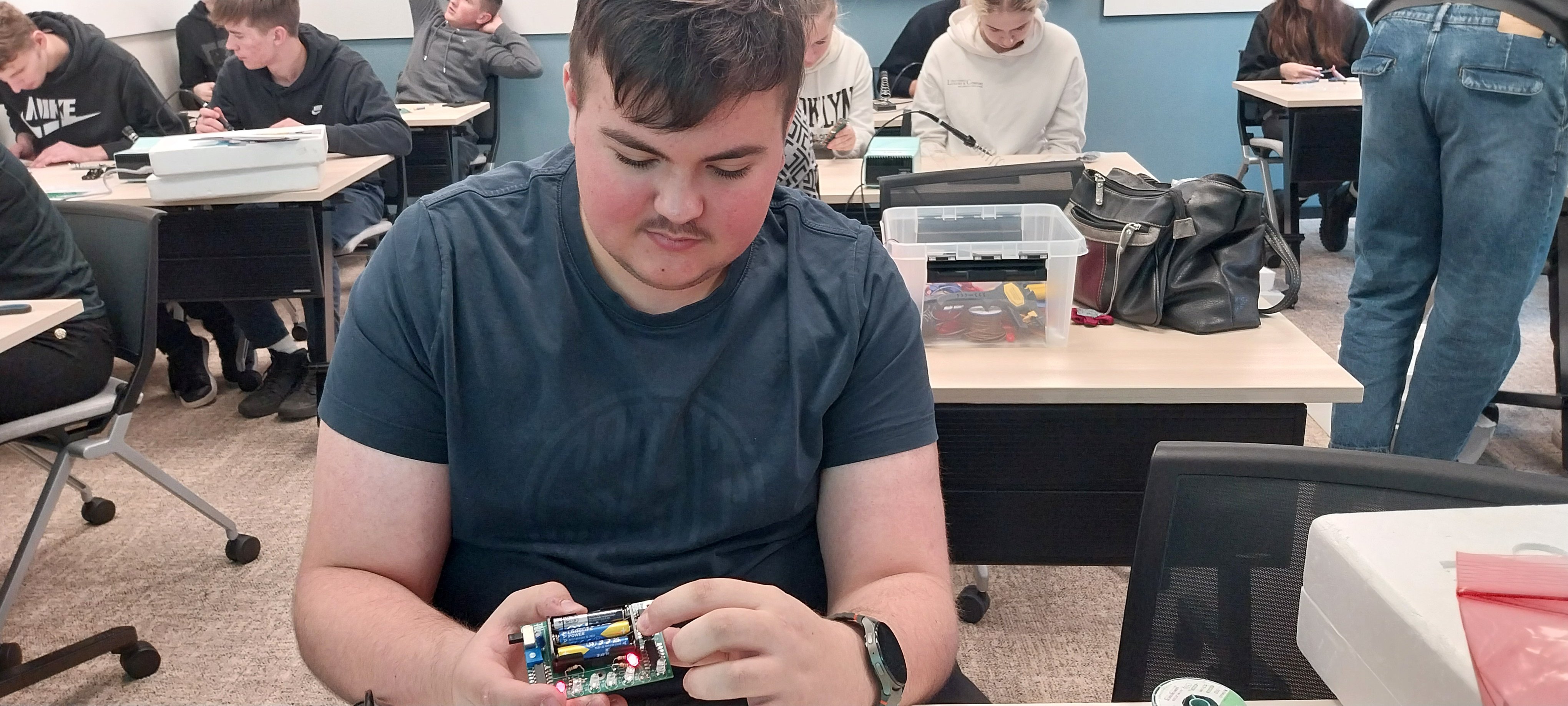 Kolmapäeval, 4. detsembril külastasid 11. ja 12.klassi õpilased Tallinnas TalTechi (Tallinna Tehnikaülikooli), et tutvuda sealsete erialade ja õppimisvõimalustega. Lisaks infotunnile prooviti kätt ka elektroenergeetika töötoas vooluringi koostades. Esimesena sai lambid põlema Robert.